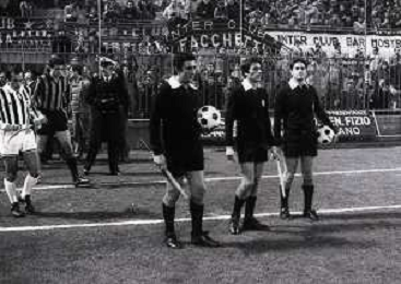 28-11-1979 MILANO QUARTI DI FINALE ANDATA DI COPPA ITALIA INTER -JUVENTUS 1-2 NELLAFOTO LA TERNA ARBITRALE CON L'ARBITRO PIETRO D'ELIA AG ALDO LIVERANI SAS