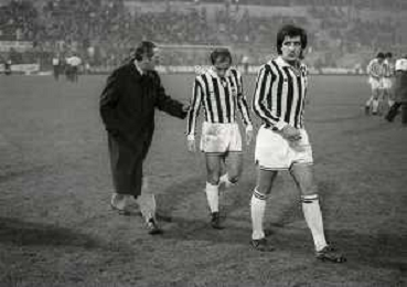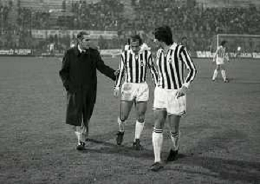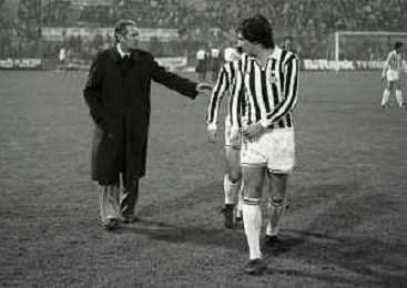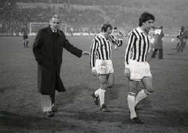 28-11-1979 MILANO QUARTI DI FINALE ANDATA DI COPPA ITALIA INTER -JUVENTUS 1-2 NELLAFOTO MARCO TARDELLI CON IL PRESIDENTE INTER IVANOE FRAIZZOLI E GIANCARLO BELTRAMI AG ALDO LIVERANI SAS