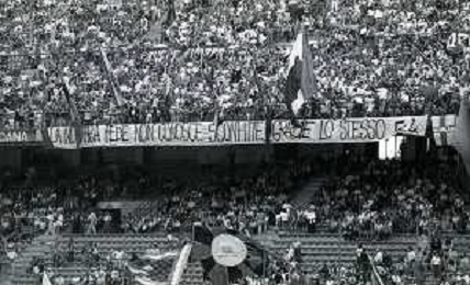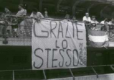 NEG-28-05-1995 MILANO-CAMPIONATO DI CALCIO SERIE A MILAN-BARI 0-1 NELLA FOTO STRISCIONE TIFOSI MILAN AG ALDO LIVERANI SAS