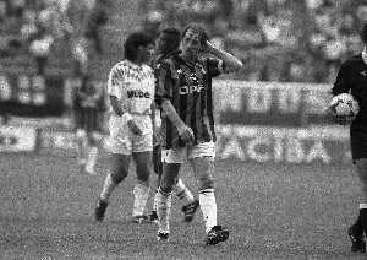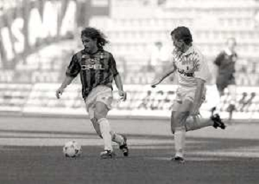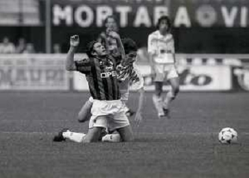 NEG-28-05-1995 MILANO-CAMPIONATO DI CALCIO SERIE A MILAN-BARI 0-1 NELLA FOTO PAOLO MALDINI E IGOR PROTTI AG ALDO LIVERANI SAS