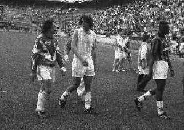 NEG-28-05-1995 MILANO-CAMPIONATO DI CALCIO SERIE A MILAN-BARI 0-1 NELLA FOTO DEMETRIO ALBERTINI E MARCEL DESAILLY A FINE GARA AG ALDO LIVERANI SAS