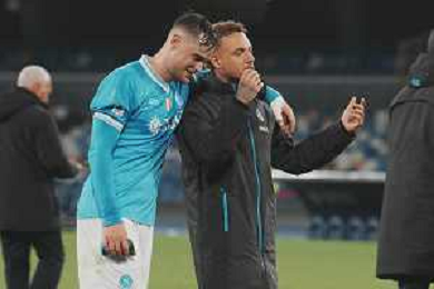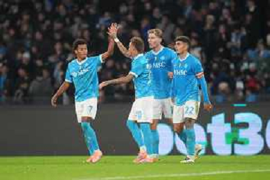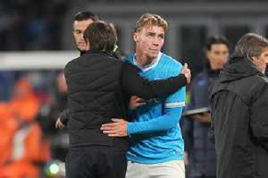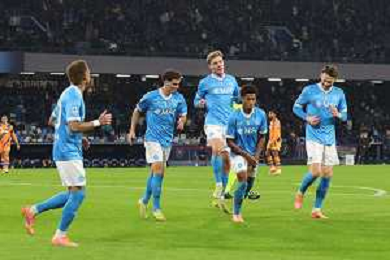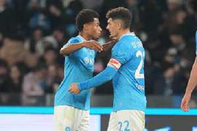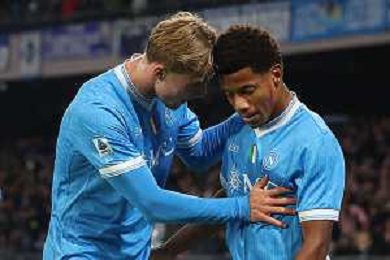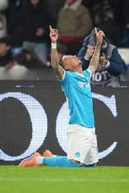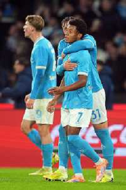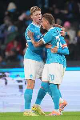 NAPOLI ATALANTA NELLA FOTO: ESULTANZA FINE GARA Noa Lang FOTO MOSCA / AGENZIA ALDO LIVERANI -TVPM NAPOLI-ATALANTA Campionato calcio Serie A 22.11.2025