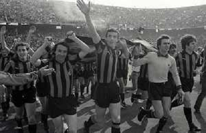 NEG-27-04-1980 MILANO CAMPIONATO DI CALCIO SERIE A INTER -ROMA 2-2 LA SQUADRA DELL'INTER FESTEGGIA LA VITTORIA DELLO SCUDETTO GIAMPIERO MARINI-GRAZIANO BINI-IVANO BORDON FOTO ENRICO LIVERANI-AG ALDO LIVERANI SAS