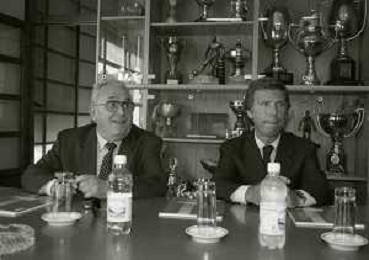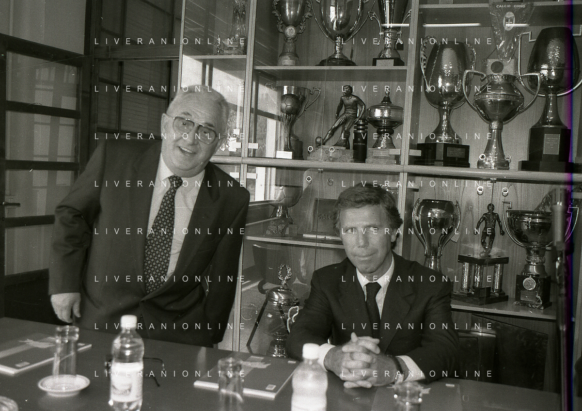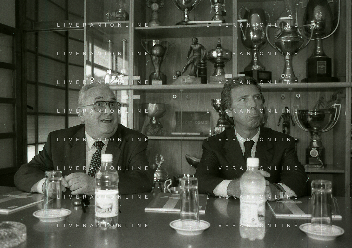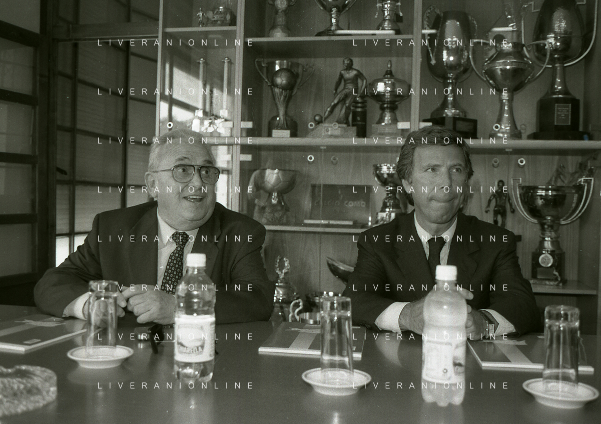 NEG-10-06-1997 COMO-PASSAGGIO DI PROPRIETA' DEL COMO CALCIO DALLA PRESIDENZA MARIO BERETTA A ENRICO PREZIOSI NELLA FOTO ENRICO PREZIOSI NUOVO PRESIDENTE DEL COMO CALCIO CON L'ALLENATORE MARIO BERETTA AG ALDO LIVERANI SAS