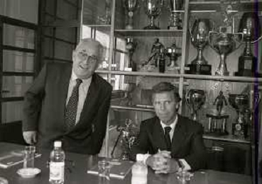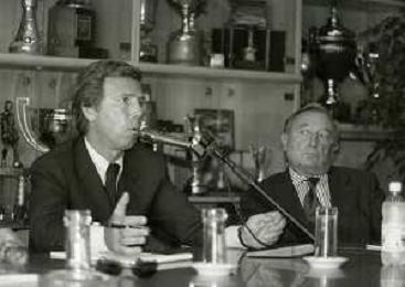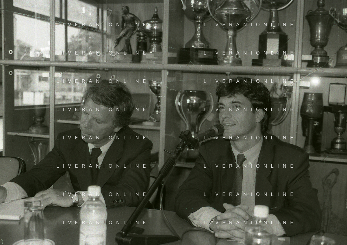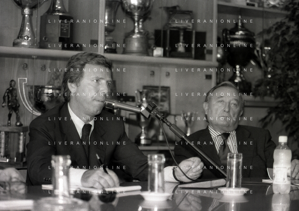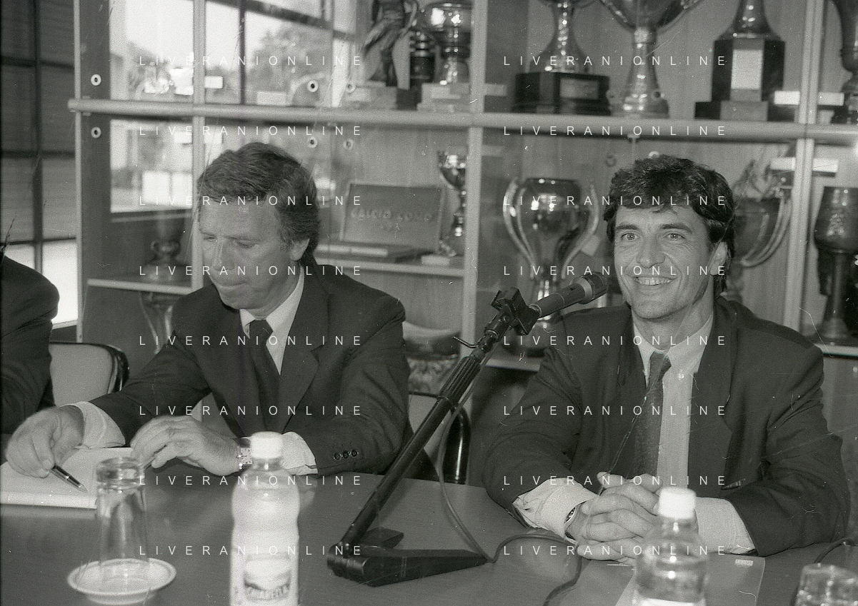 NEG-10-06-1997 COMO-PASSAGGIO DI PROPRIETA' DEL COMO CALCIO DALLA PRESIDENZA MARIO BERETTA A ENRICO PREZIOSI NELLA FOTO ENRICO PREZIOSI NUOVO PRESIDENTE DEL COMO CALCIO CON L'ALLENATORE MARIO BERETTA AG ALDO LIVERANI SAS