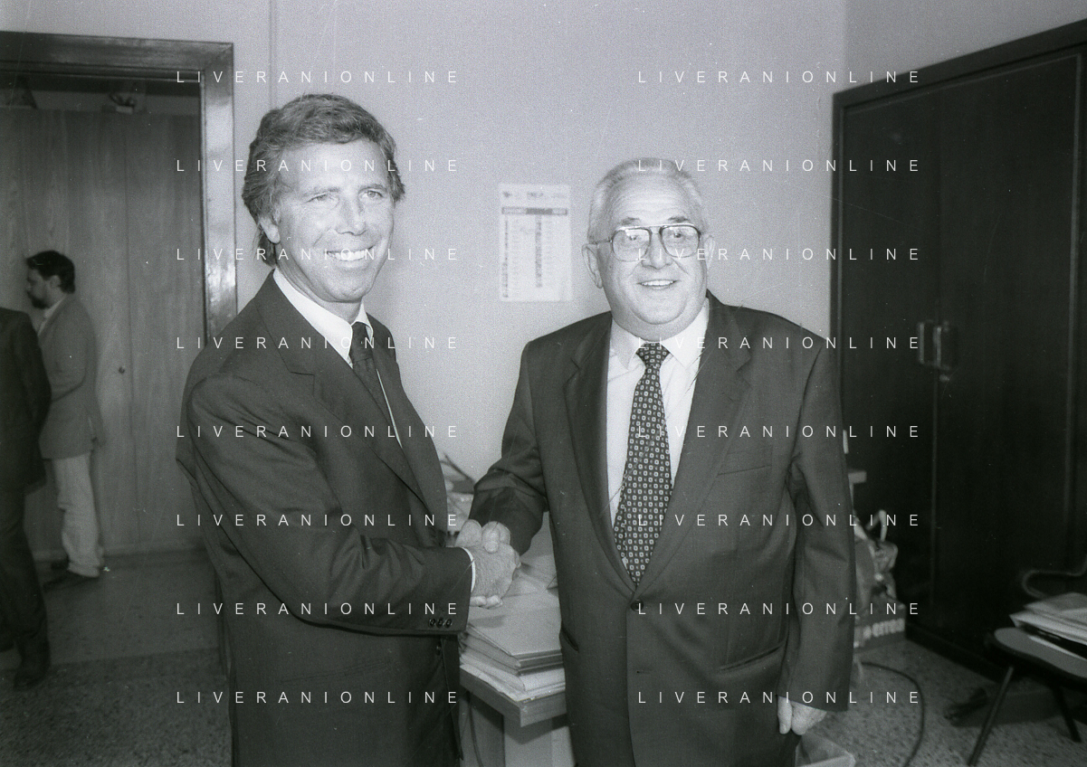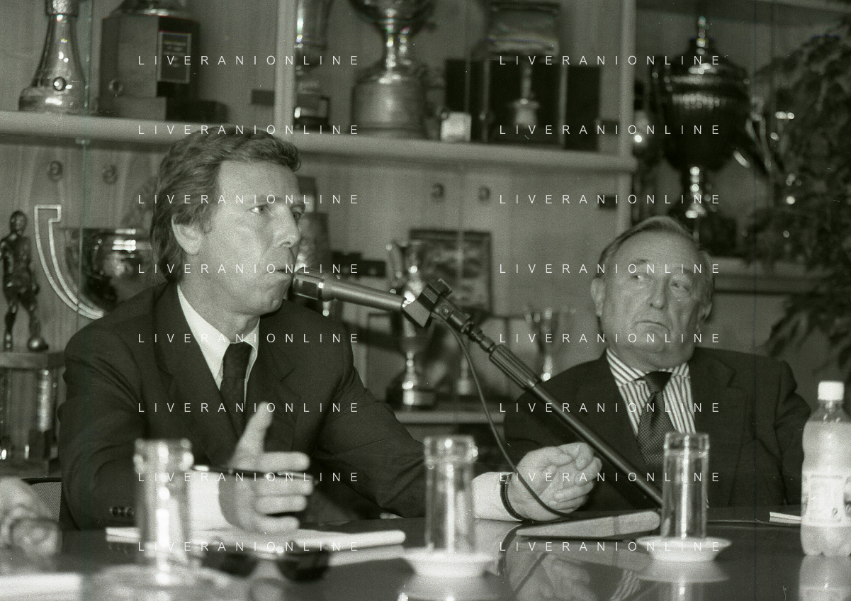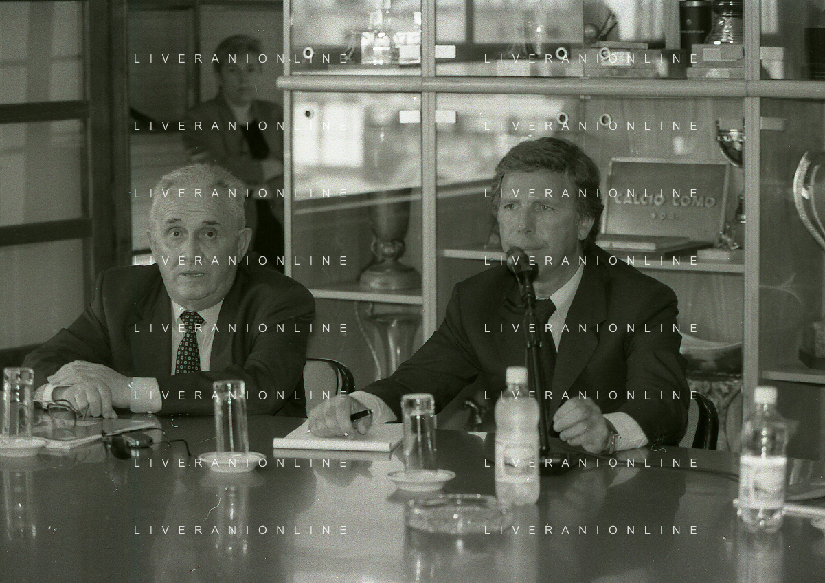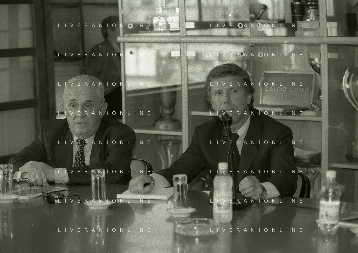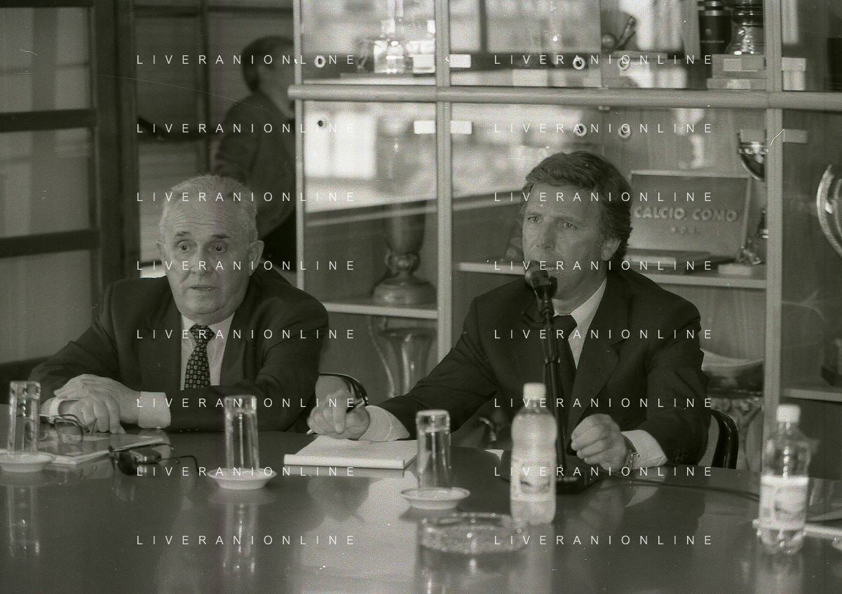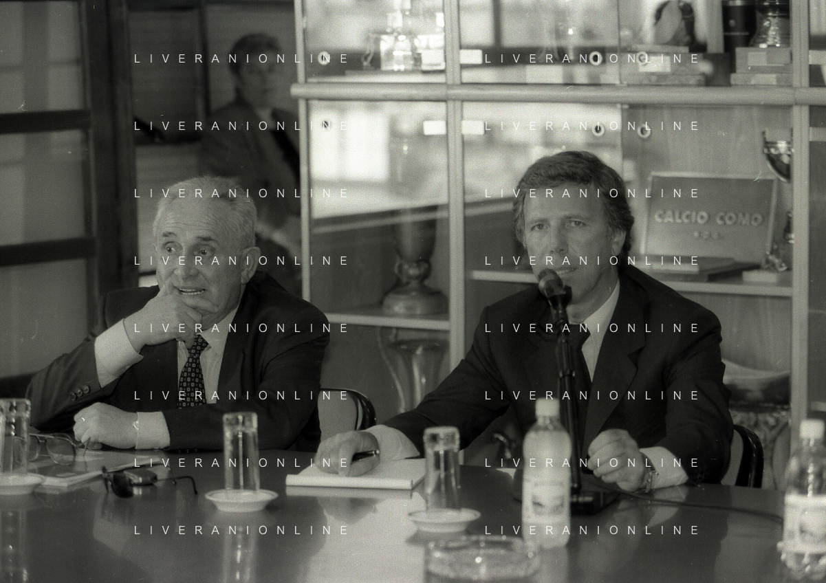 NEG-10-06-1997 COMO-PASSAGGIO DI PROPRIETA' DEL COMO CALCIO DALLA PRESIDENZA MARIO BERETTA A ENRICO PREZIOSI NELLA FOTO ENRICO PREZIOSI NUOVO PRESIDENTE DEL COMO CALCIO CON IL PRESIDENTE DEL COMO CALCIO MARIO BERETTA AL PASSAGGIO DI PROPRIETA' AG ALDO LIVERANI SAS