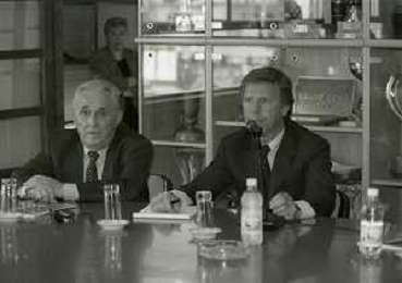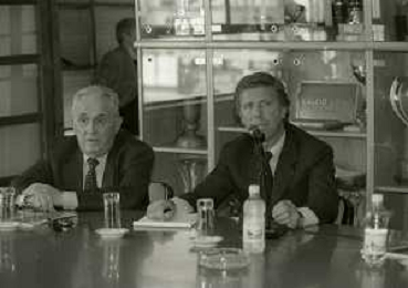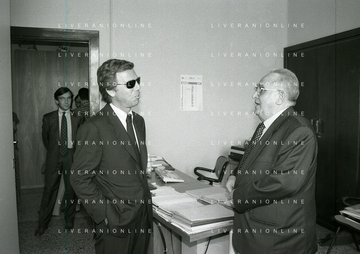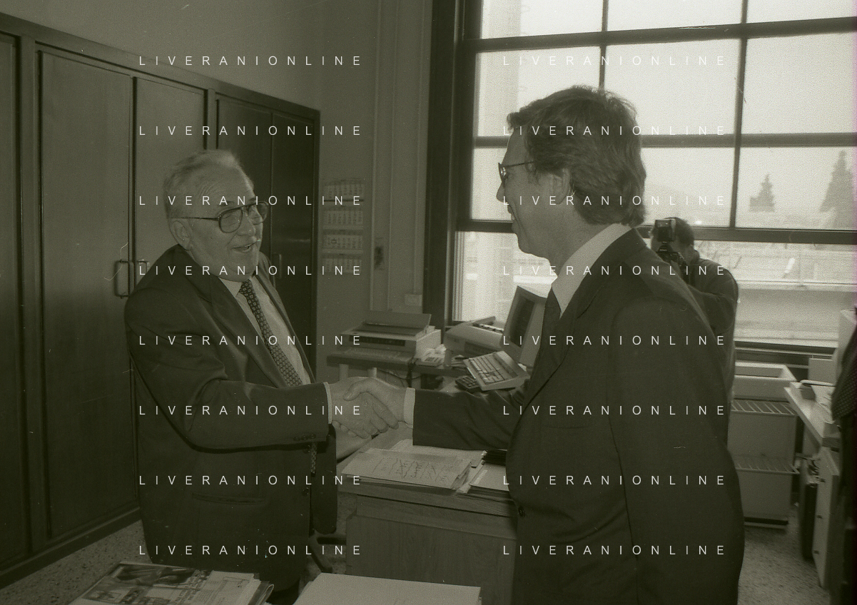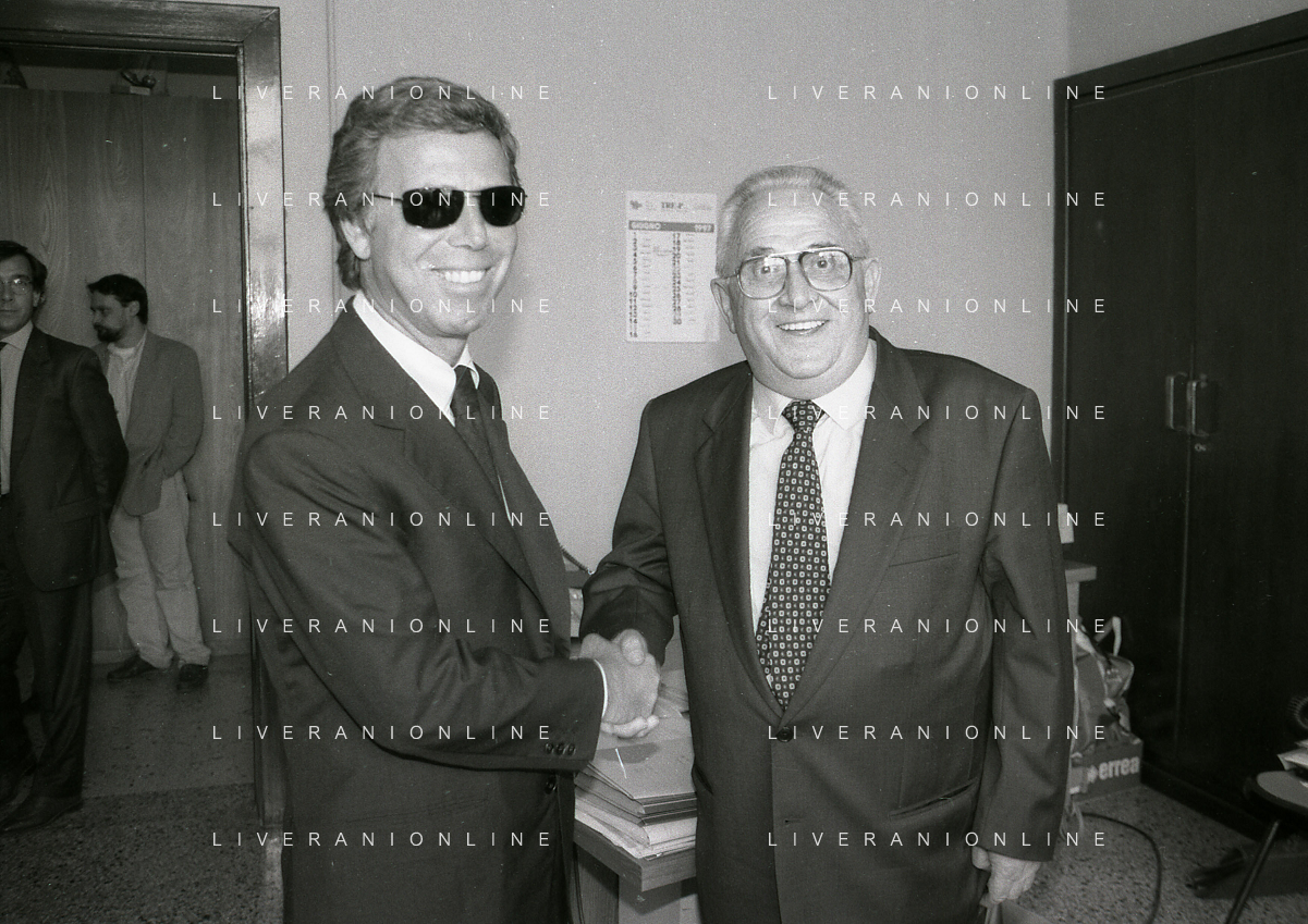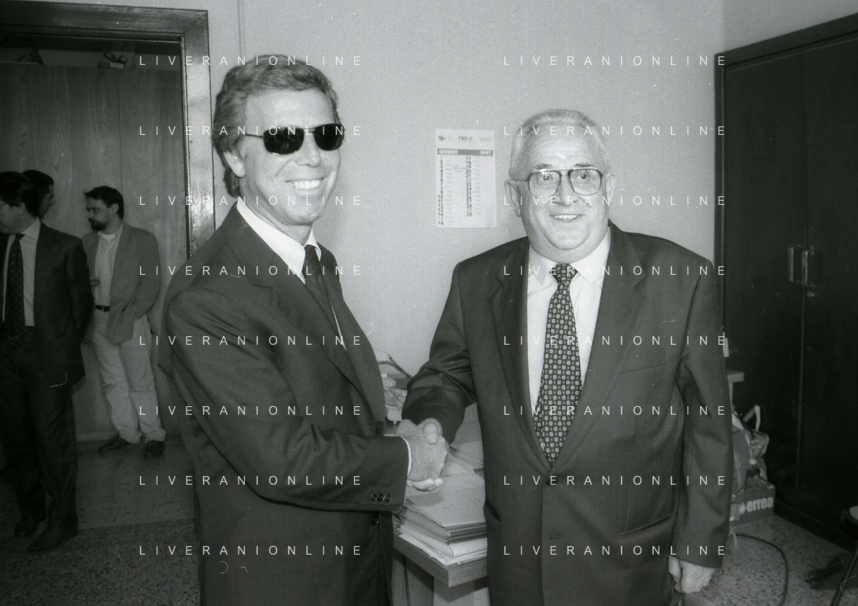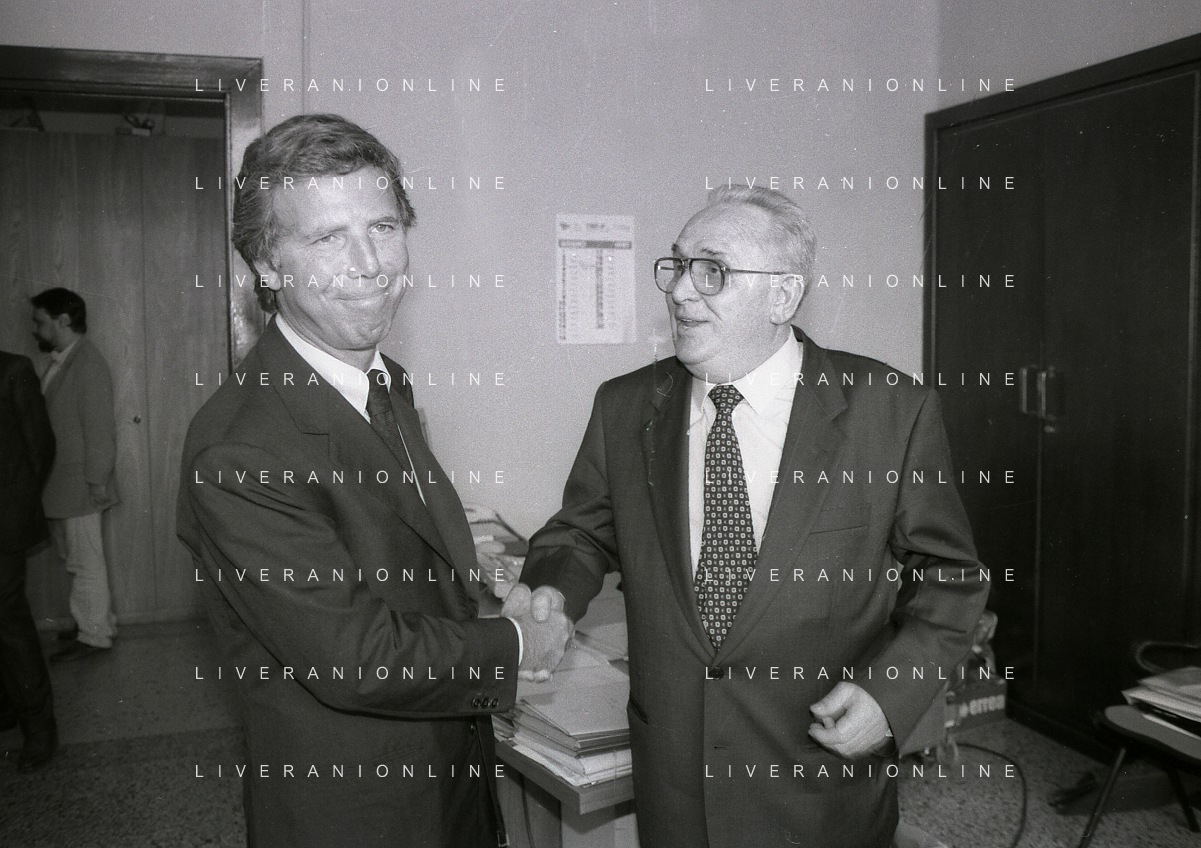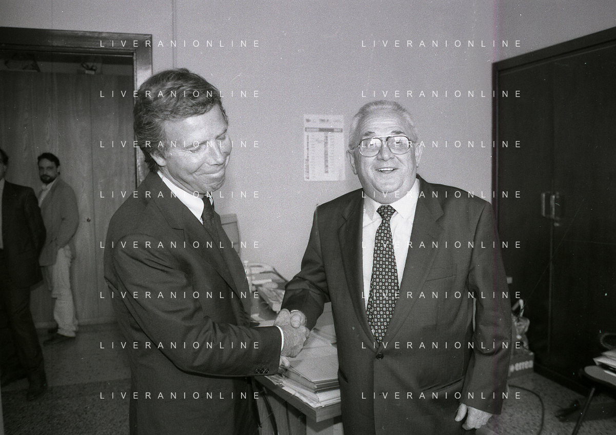 NEG-10-06-1997 COMO-PASSAGGIO DI PROPRIETA' DEL COMO CALCIO DALLA PRESIDENZA MARIO BERETTA A ENRICO PREZIOSI NELLA FOTO ENRICO PREZIOSI NUOVO PRESIDENTE DEL COMO CALCIO CON IL PRESIDENTE DEL COMO CALCIO MARIO BERETTA AL PASSAGGIO DI PROPRIETA' AG ALDO LIVERANI SAS