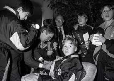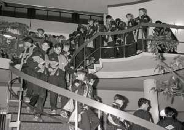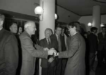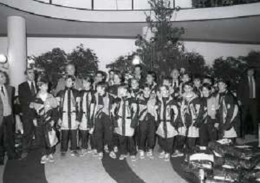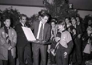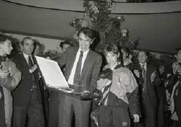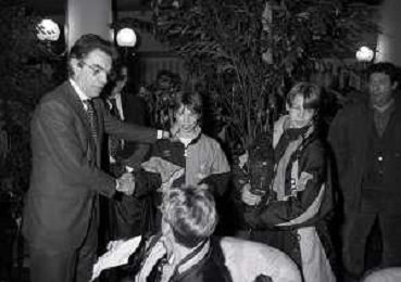 NEG- APPIANO GENTILE- IL PRESIDENTE DELL'INTER MASSIMO MORATTI INTERVIENE AL NATALE DELLE GIOVANILI DELL'INTER NELL'ANNO 1995 NELLA FOTO SANDRO SABATINI E SUSANNA WERMELINGER AG ALDO LIVERANI SAS