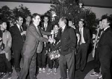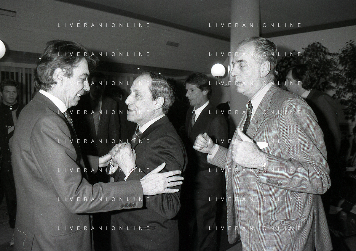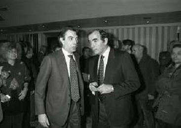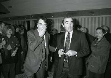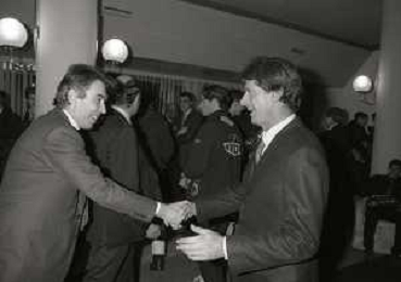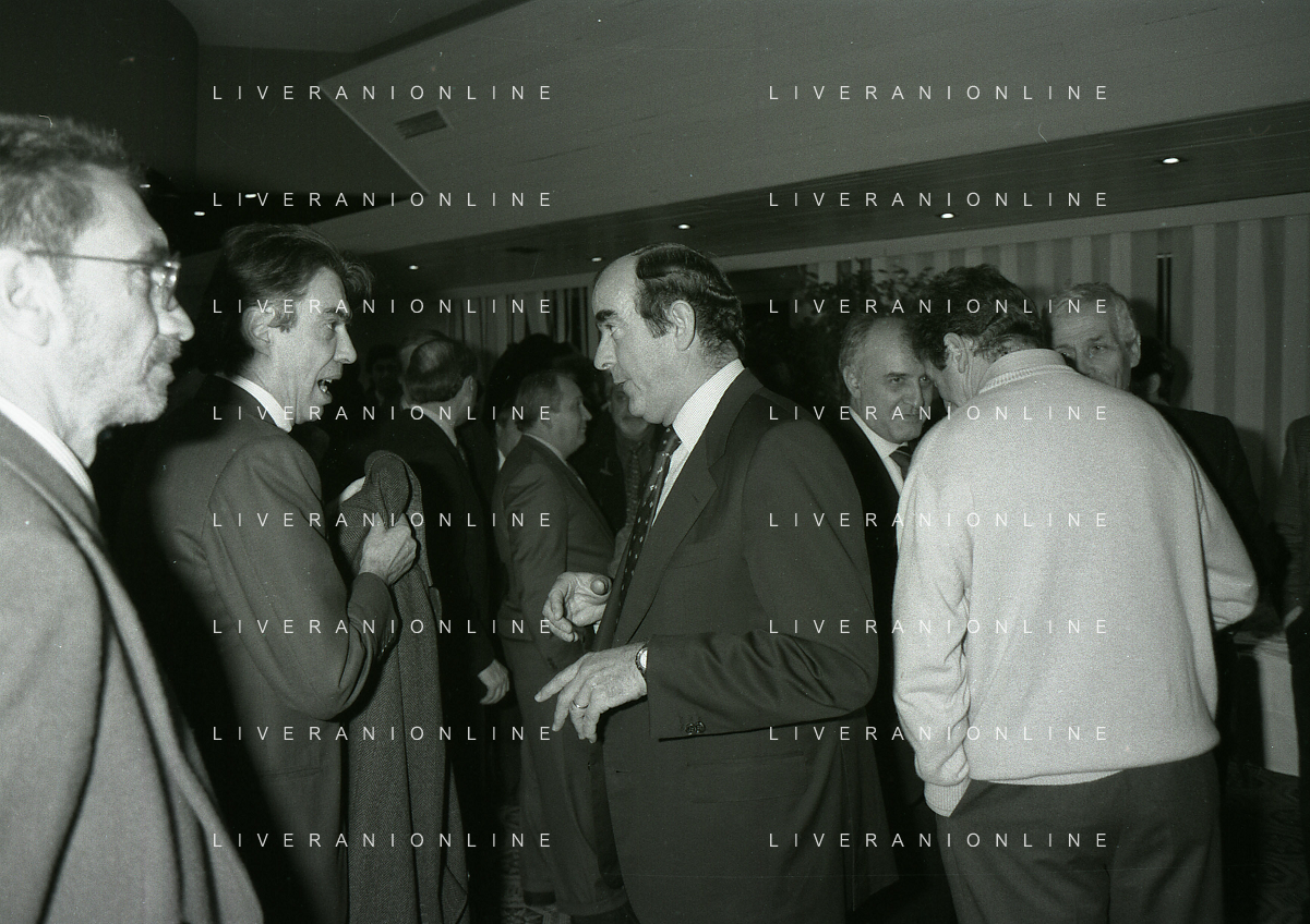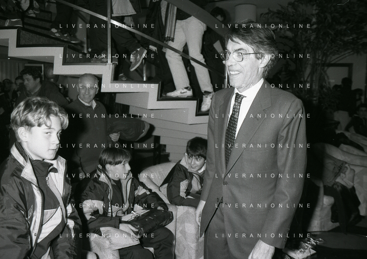 NEG- APPIANO GENTILE- IL PRESIDENTE DELL'INTER MASSIMO MORATTI INTERVIENE AL NATALE DELLE GIOVANILI DELL'INTER NELL'ANNO 1995 NELLA FOTO MASSIMO MORATTI CON MARIO CORSO AG ALDO LIVERANI SAS