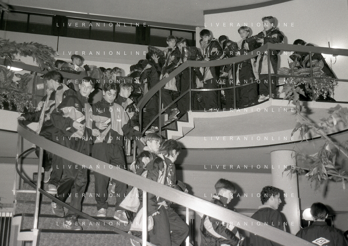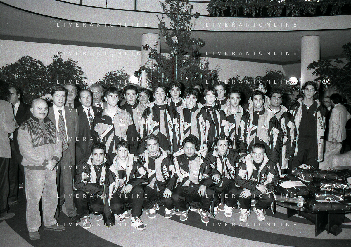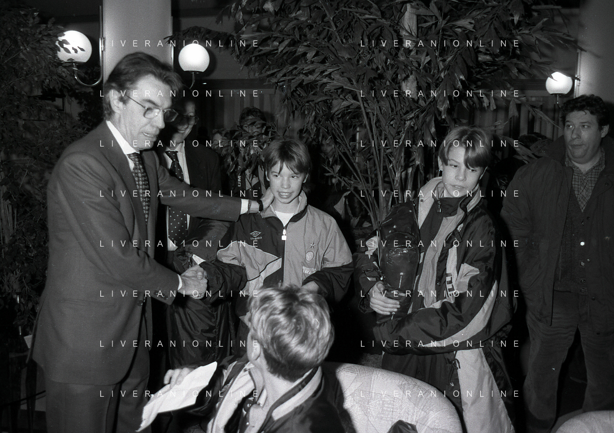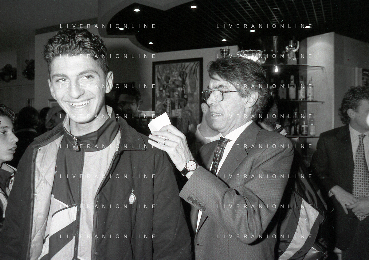 NEG- APPIANO GENTILE- IL PRESIDENTE DELL'INTER MASSIMO MORATTI INTERVIENE AL NATALE DELLE GIOVANILI DELL'INTER NELL'ANNO 1995 NELLA FOTO MASSIMO MORATTI CON MASSIMO PAGANIN AG ALDO LIVERANI SAS