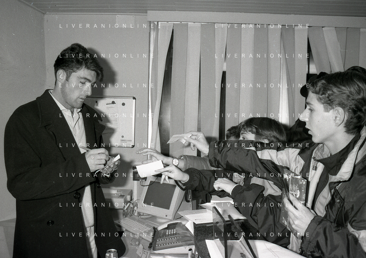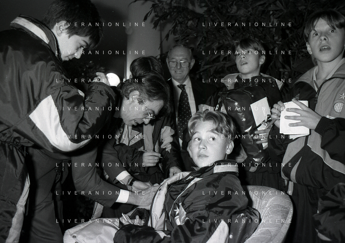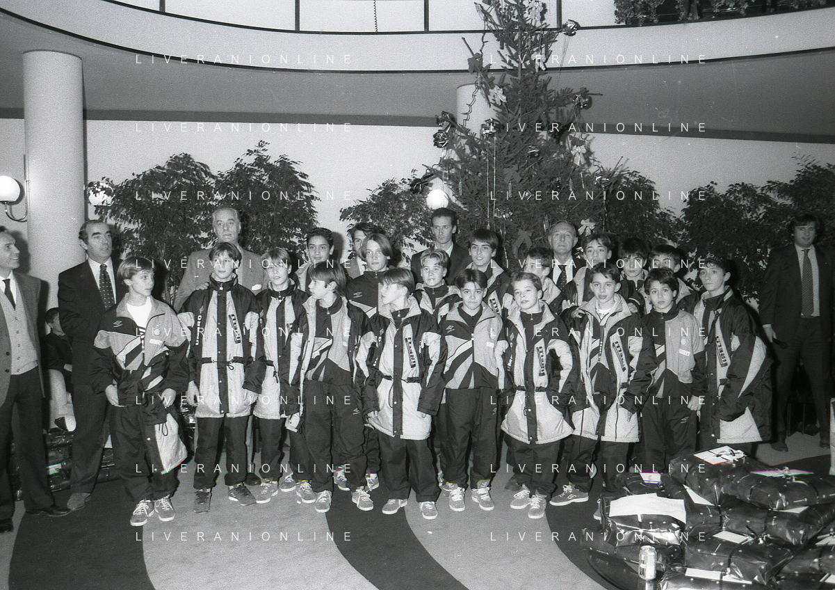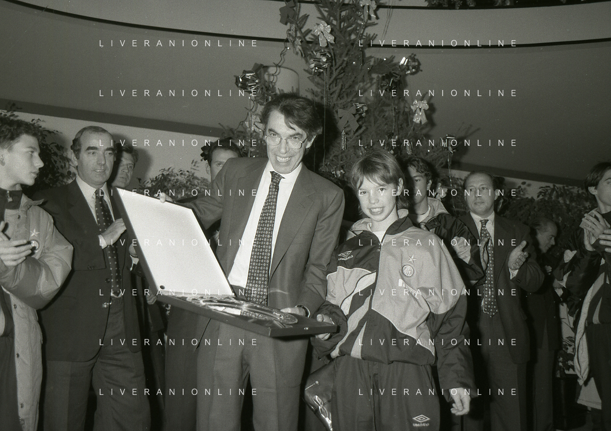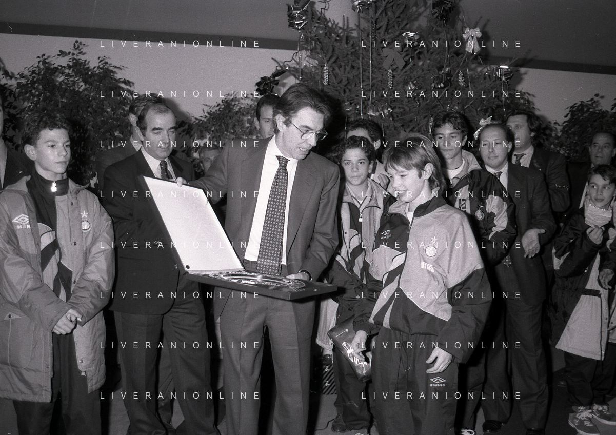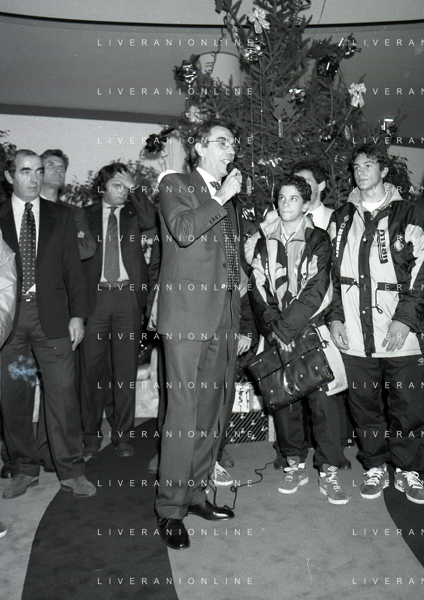 NEG- APPIANO GENTILE- IL PRESIDENTE DELL'INTER MASSIMO MORATTI INTERVIENE AL NATALE DELLE GIOVANILI DELL'INTER NELL'ANNO 1995 NELLA FOTO GIANLUCA PAGLIUCA AG ALDO LIVERANI SAS