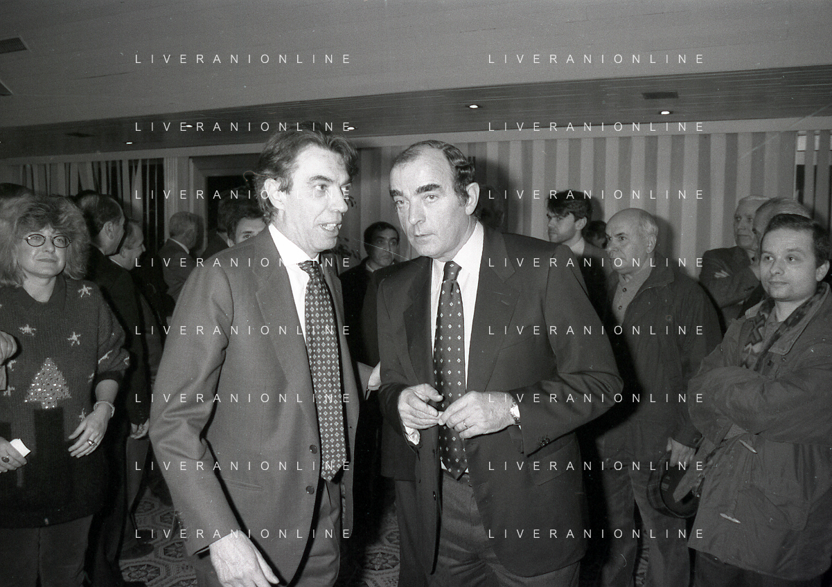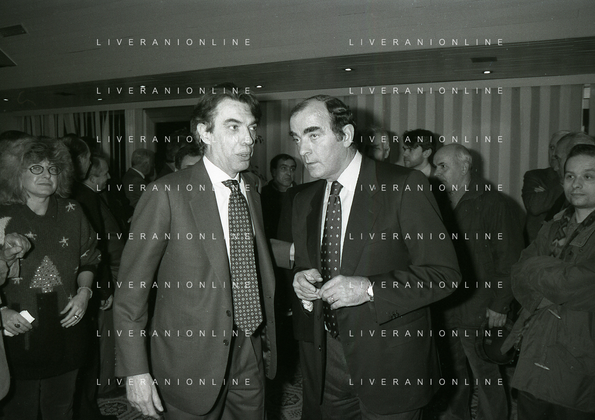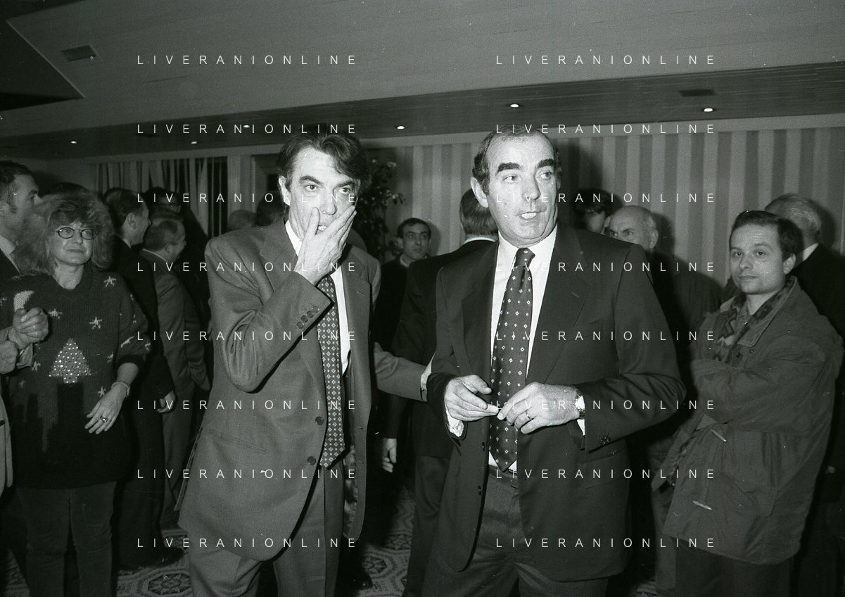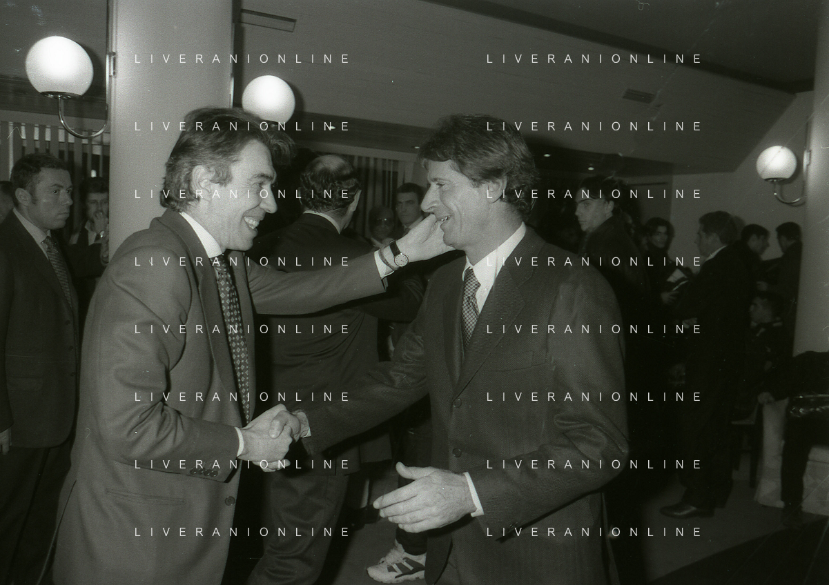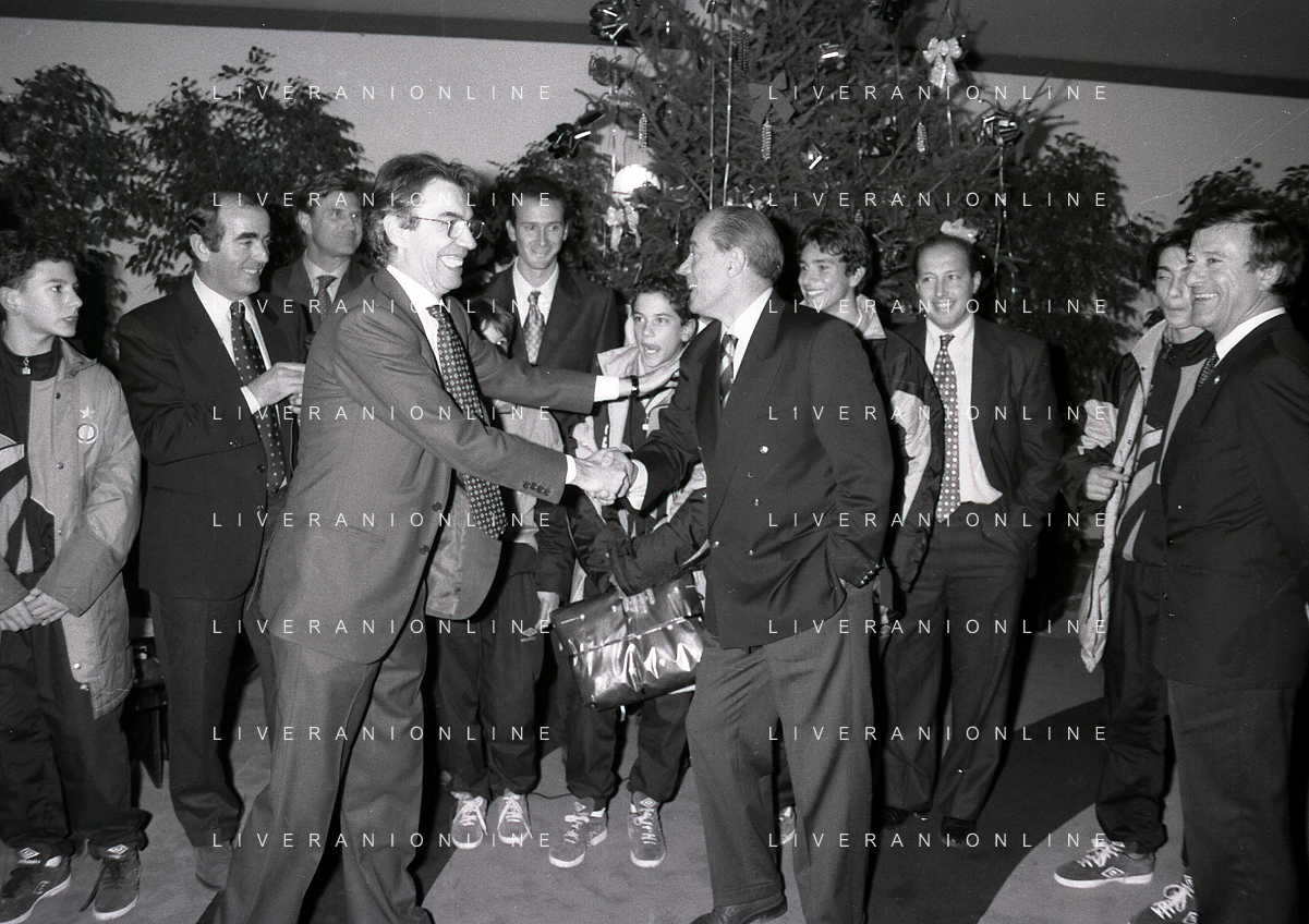 NEG- APPIANO GENTILE- IL PRESIDENTE DELL'INTER MASSIMO MORATTI INTERVIENE AL NATALE DELLE GIOVANILI DELL'INTER NELL'ANNO 1995 NELLA FOTO MASSIMO MORATTI CON ANGELO DOMENGHINI AG ALDO LIVERANI SAS