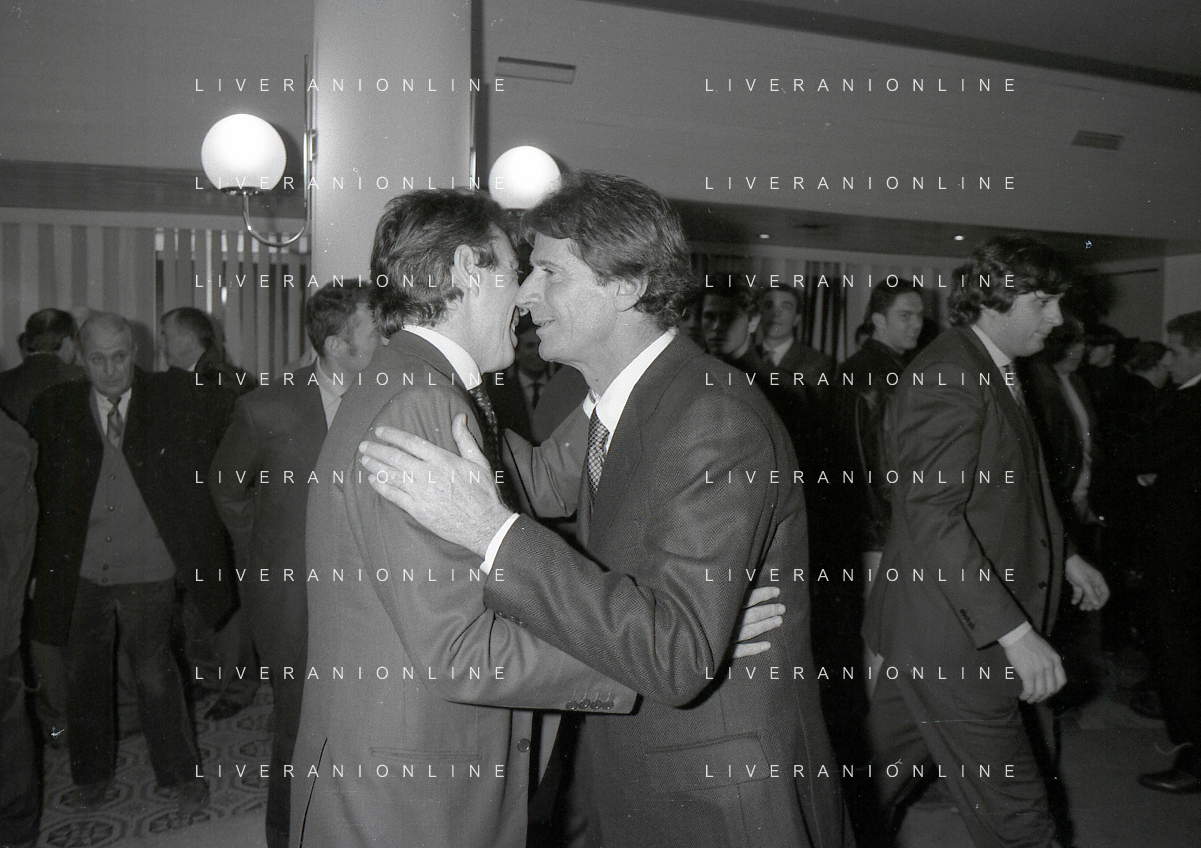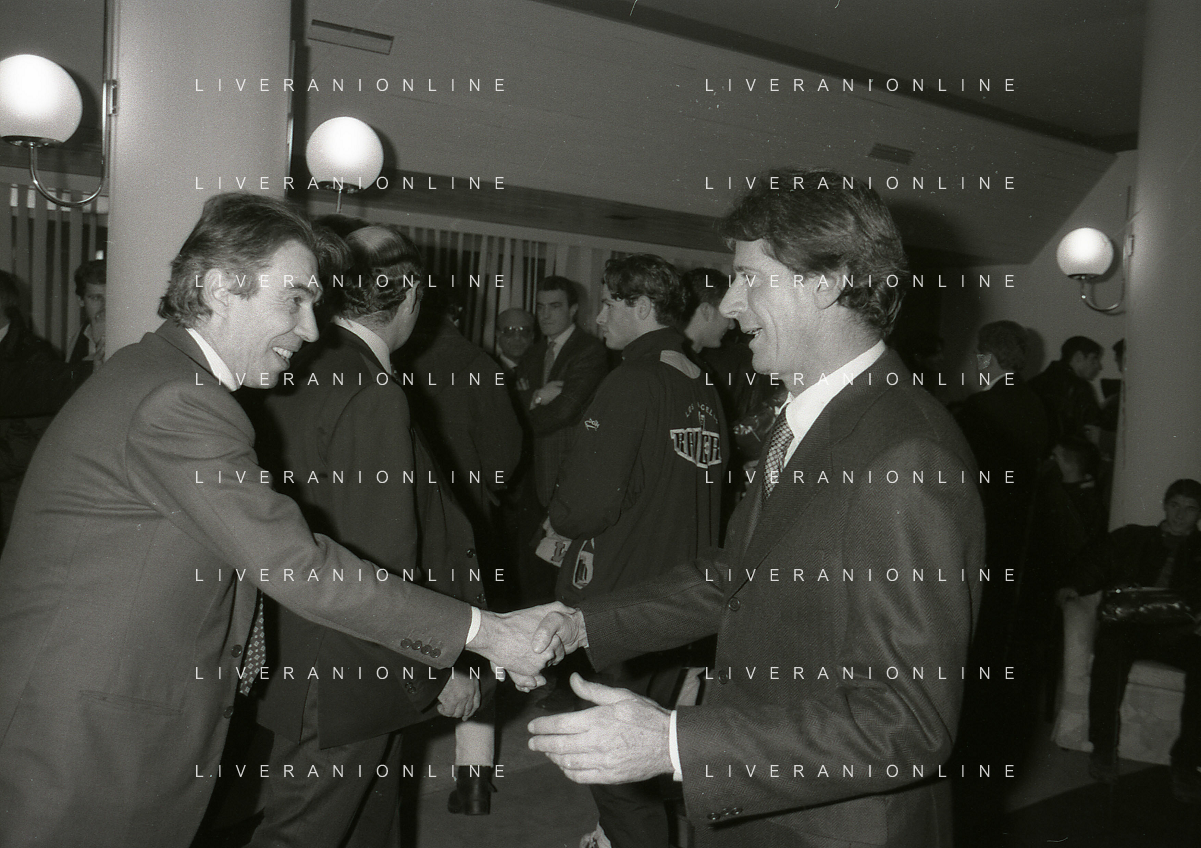 NEG- APPIANO GENTILE- IL PRESIDENTE DELL'INTER MASSIMO MORATTI INTERVIENE AL NATALE DELLE GIOVANILI DELL'INTER NELL'ANNO 1995 NELLA FOTO MASSIMO MORATTI CON BENITO LORENZI AG ALDO LIVERANI SAS