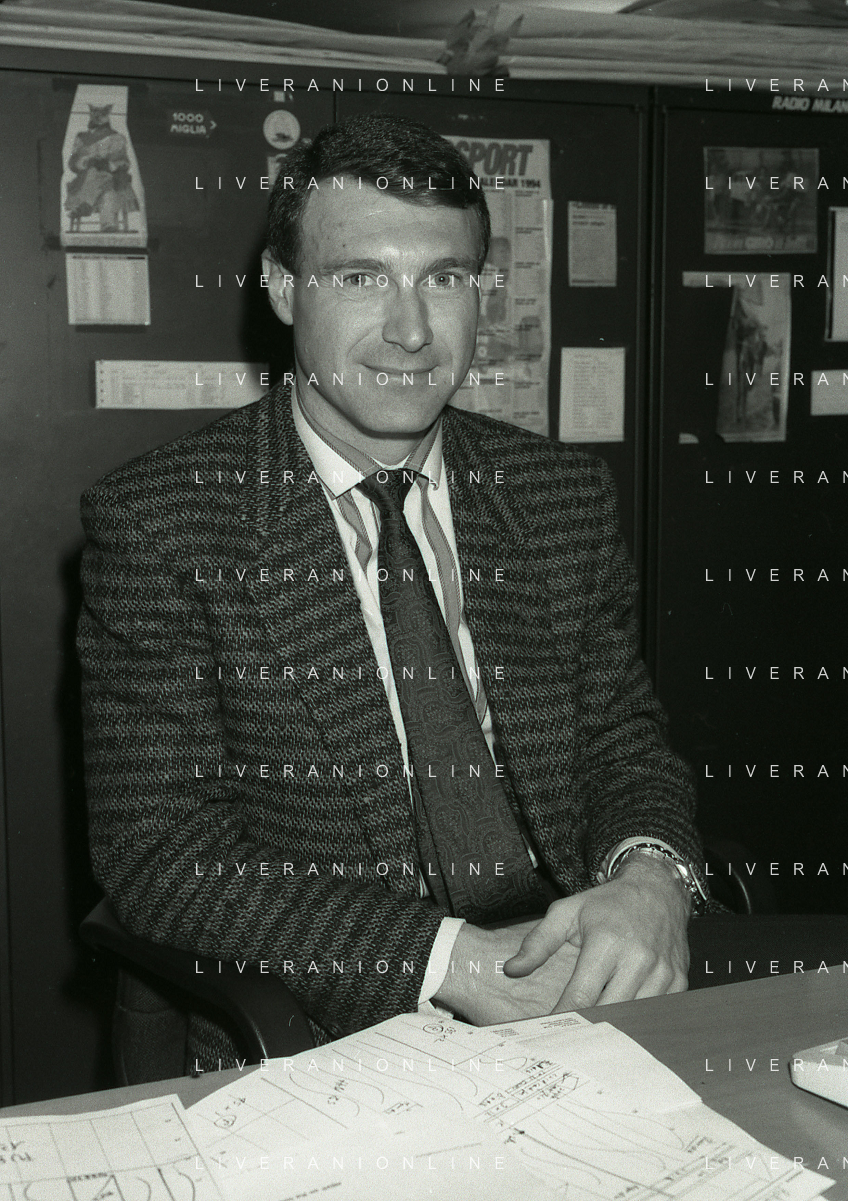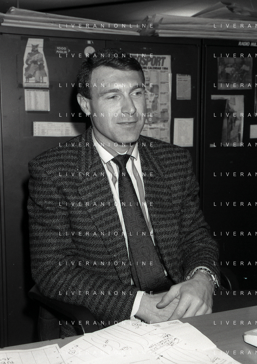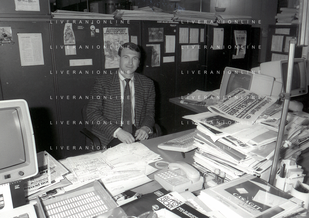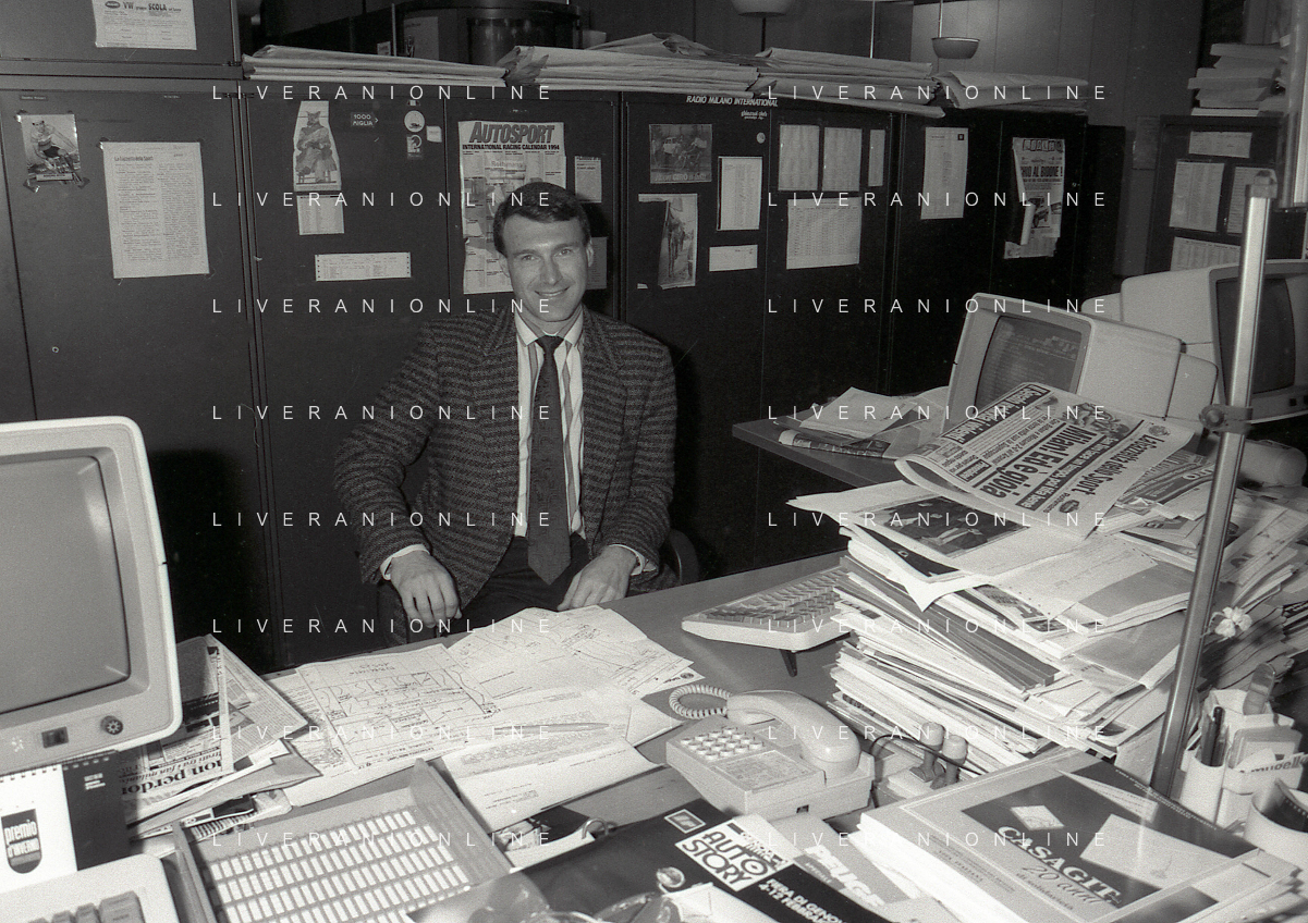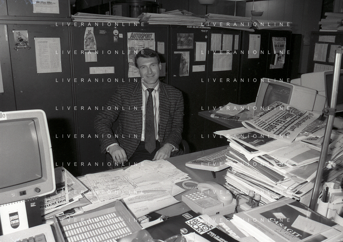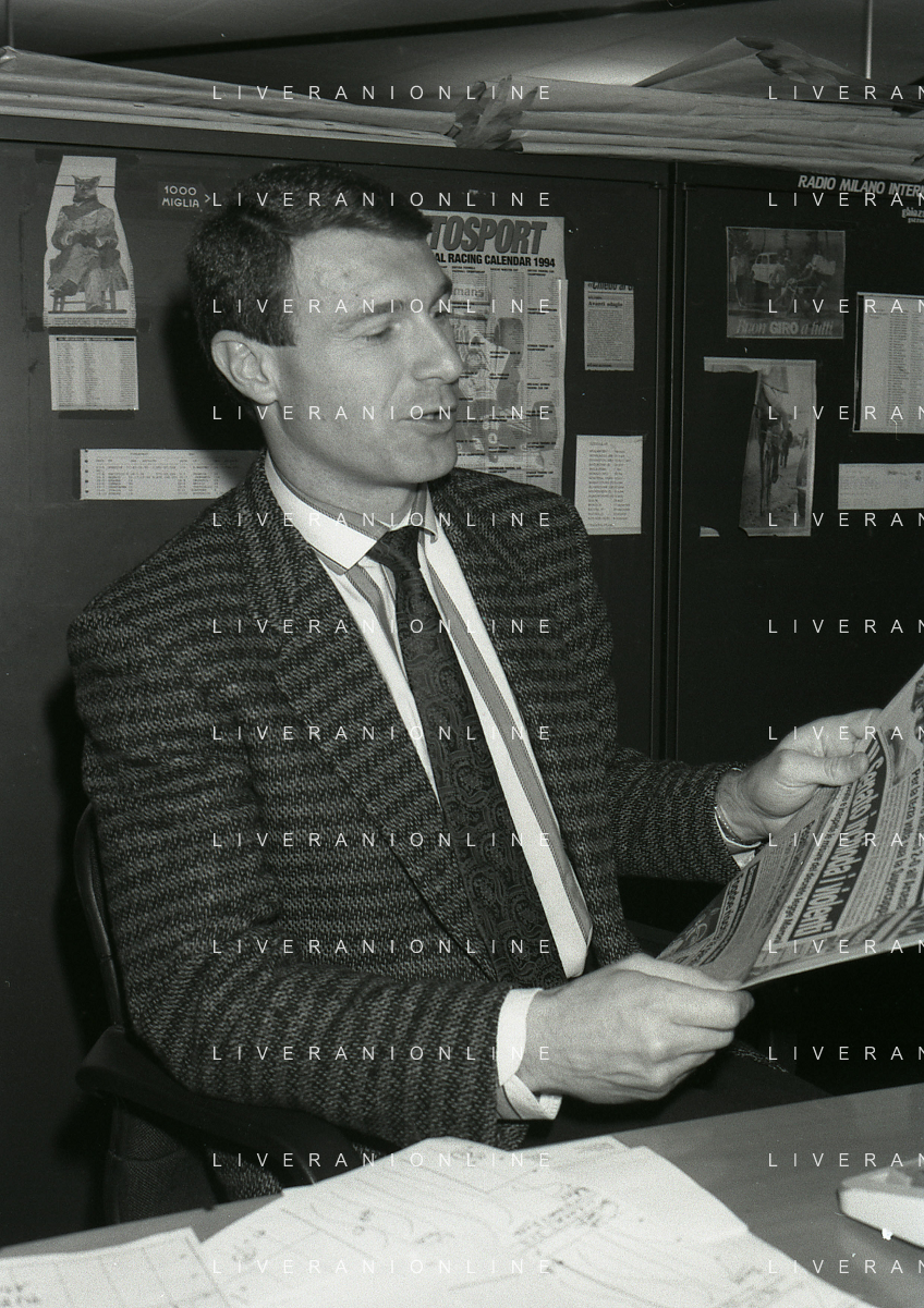 NEG-1995 MILANO- VISITA DEL PILOTA GIOVANNI LAVAGGI IN REDAZIONE ALLA GAZZETTA DELLO SPORT IN VIA SOLFERINO A MILANO NELLA FOTO GIOVANNI LAVAGGI AG ALDO LIVERANI SAS
