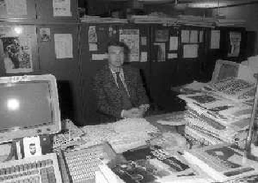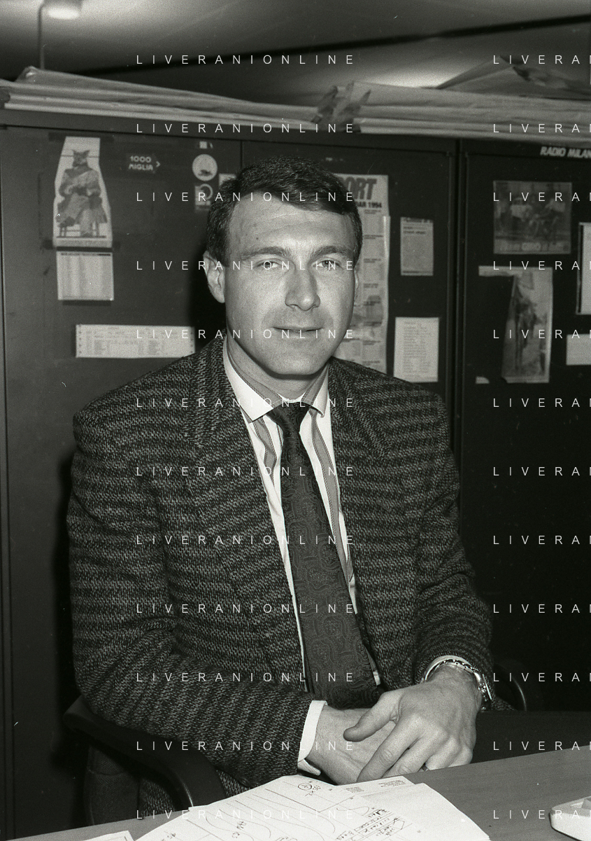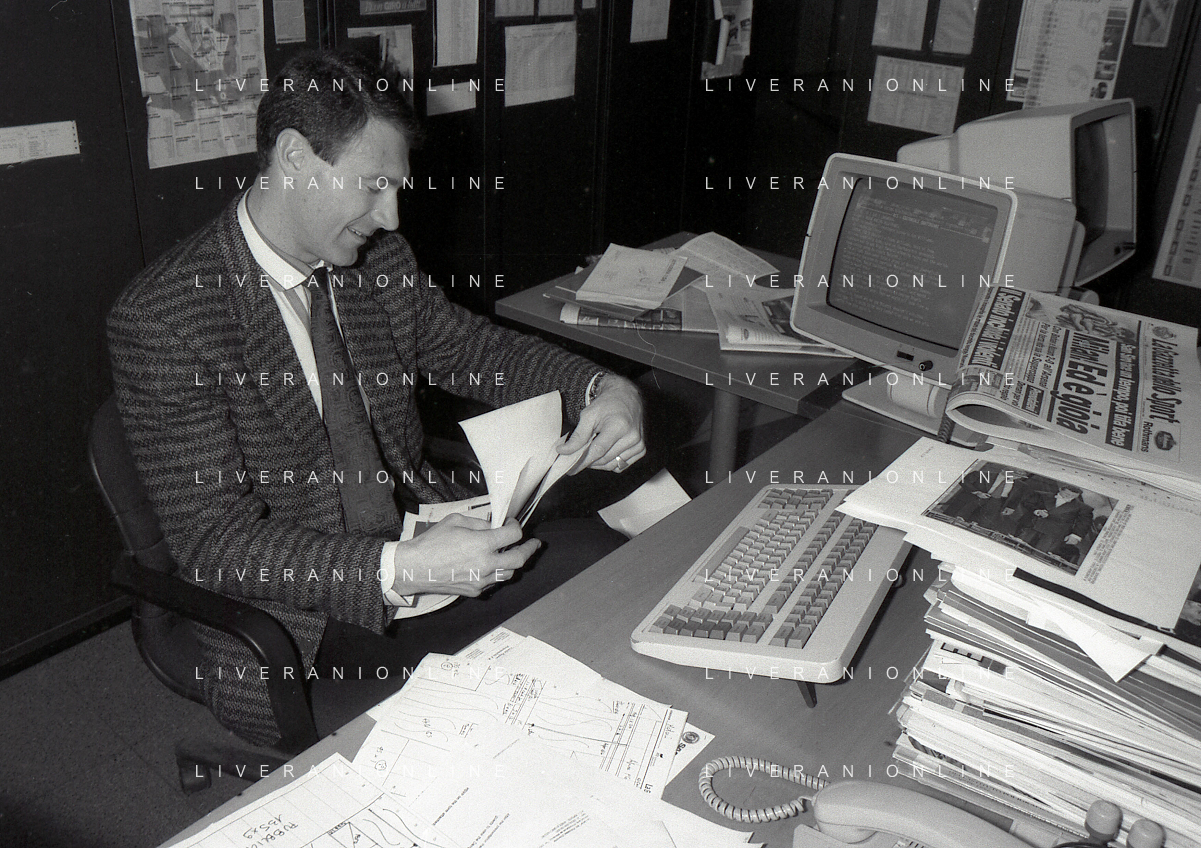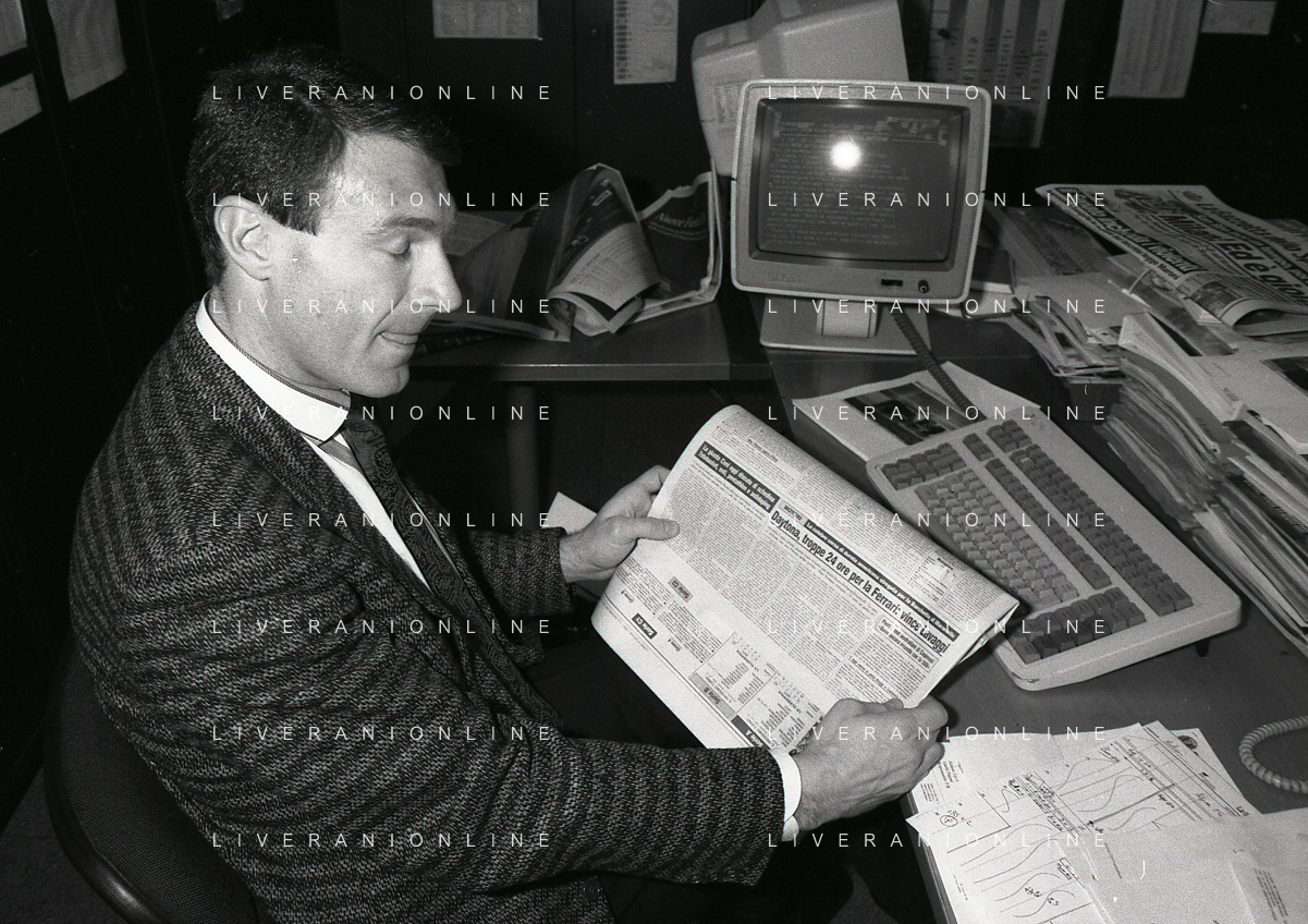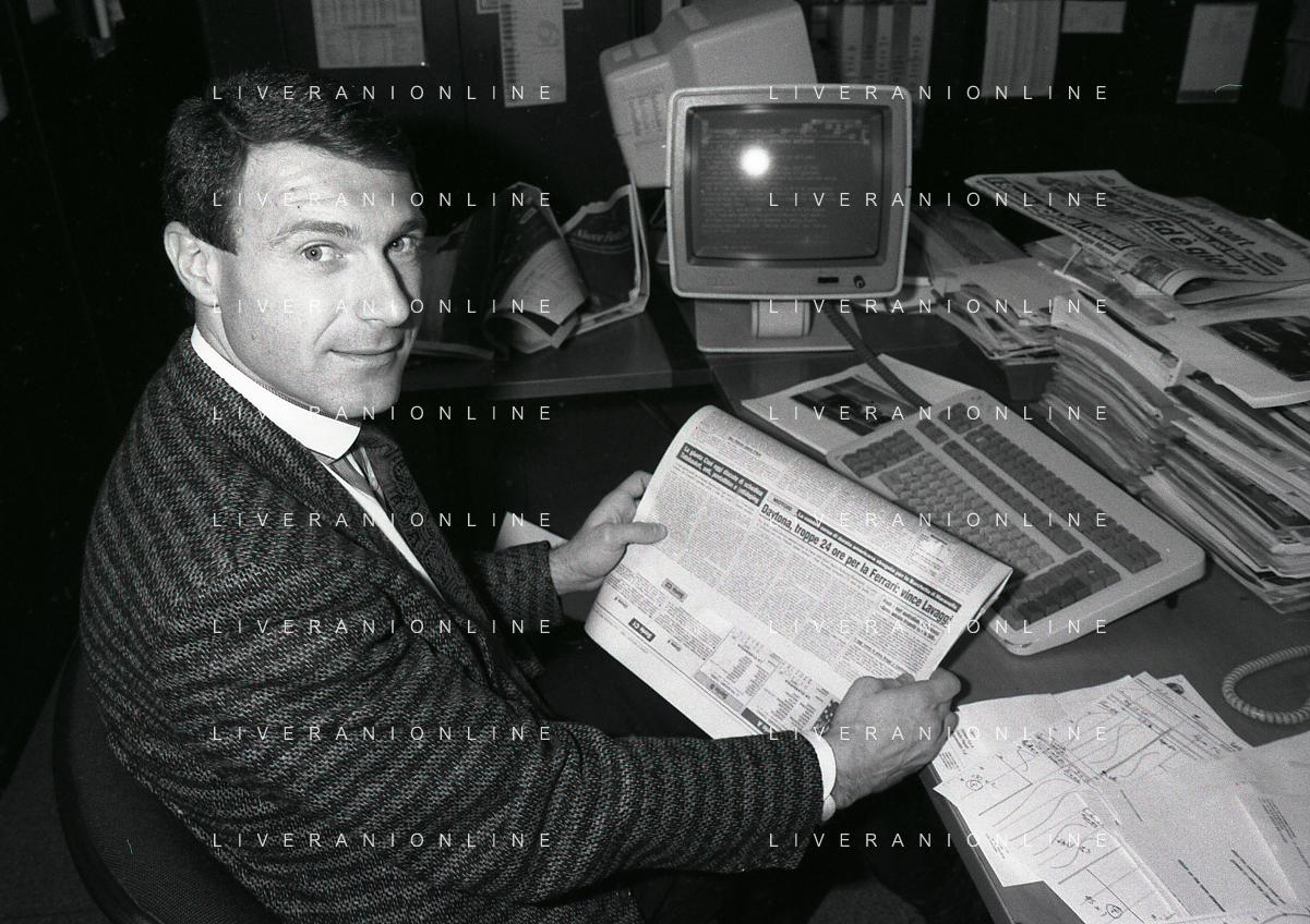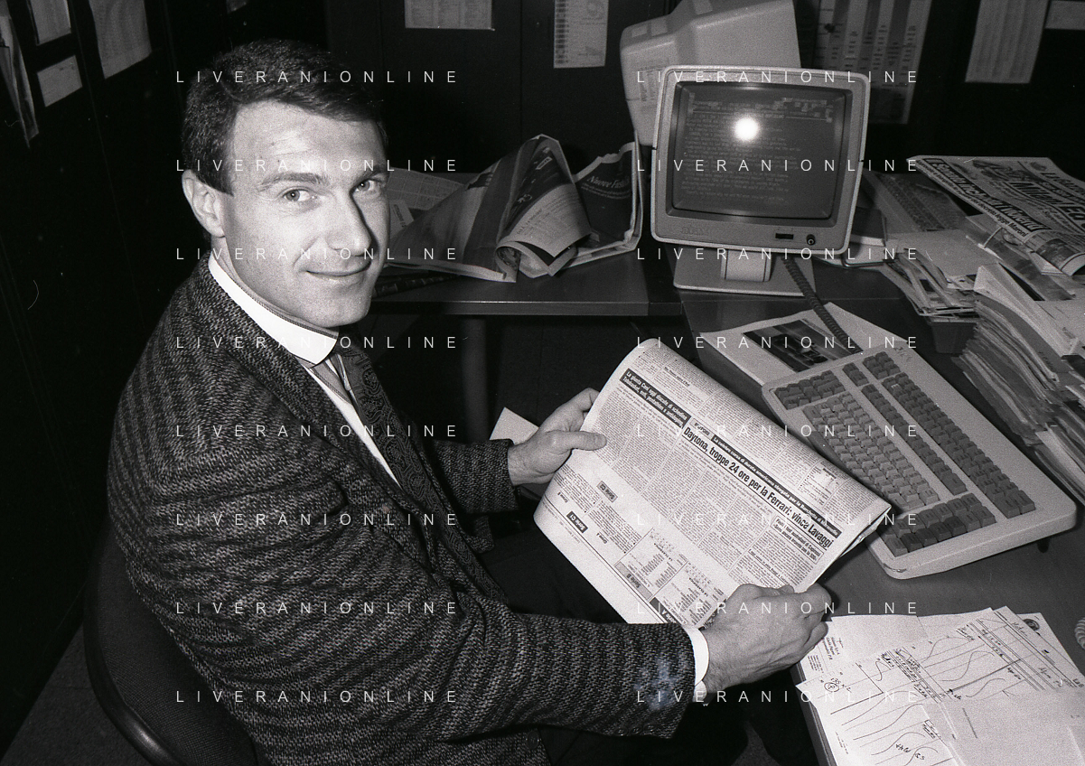 NEG-1995 MILANO- VISITA DEL PILOTA GIOVANNI LAVAGGI IN REDAZIONE ALLA GAZZETTA DELLO SPORT IN VIA SOLFERINO A MILANO NELLA FOTO GIOVANNI LAVAGGI AG ALDO LIVERANI SAS