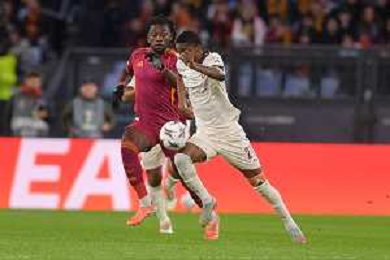 Roma vs Midtjylland Europa League - 5 Giornata Stadio Olimpico - Roma 27-11-2025 nella foto Mbabu e Wesley Foto Federico Gaetano - ag Aldo liverani ©Federico Gaetano - AGENZIA ALDO LIVERANI SAS