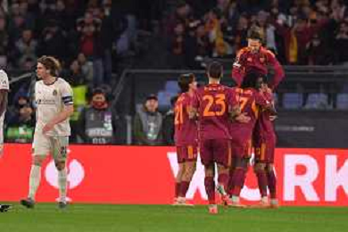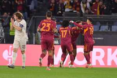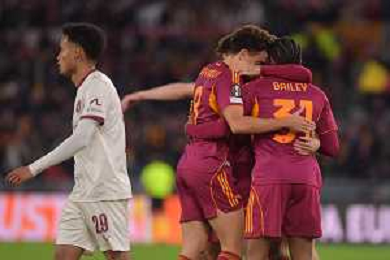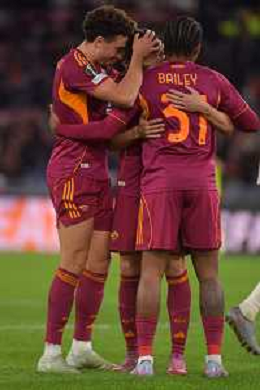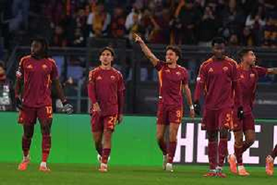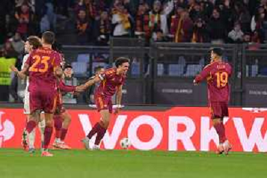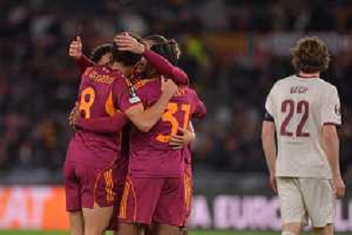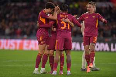 Roma vs Midtjylland Europa League - 5 Giornata Stadio Olimpico - Roma 27-11-2025 nella foto Esultanza Roma Foto Federico Gaetano - ag Aldo liverani- AGENZIA ALDO LIVERANI SAS