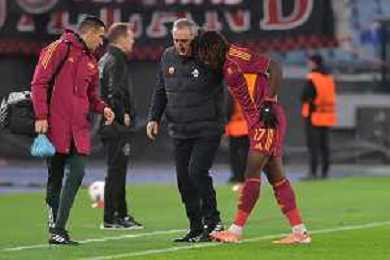 Roma vs Midtjylland Europa League - 5 Giornata Stadio Olimpico - Roma 27-11-2025 nella foto Infortunio Kone’ Foto Federico Gaetano - ag Aldo liverani ©Federico Gaetano - AGENZIA ALDO LIVERANI SAS