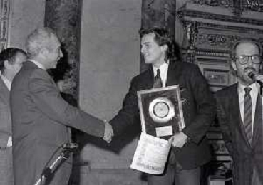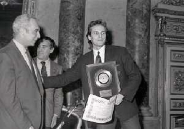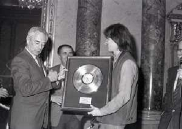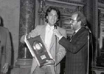 NEG-MILANO 1982 CIRCOLO DELLA STAMPA CONSEGNA DISCO D'ORO NELLA FOTO MIGUEL BOSE' AG ALDO LIVERANI SAS
