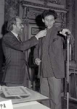 NEG-MILANO 1982 CIRCOLO DELLA STAMPA CONSEGNA DISCO D'ORO NELLA FOTO RICCARDO FOGLI AG ALDO LIVERANI SAS