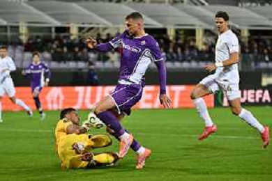 TVRG Fiorentina vs AEK Atene nella foto Edin Dzeko (Fiorentina) occasione da gol Firenze 27-11-2025 Stadio Artemio Franchi Fiorentina vs AEK Atene UEFA Conference League fase a girone unico - 4a giornata foto Roberto Garavaglia/Agenzia Aldo Liverani sas