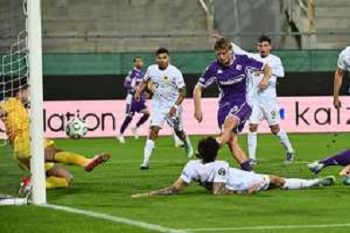 TVRG Fiorentina vs AEK Atene nella foto Albert Gudmundsson (Fiorentina) segna il gol dell'1 a 0 ma la rete viene annullata con l'aiuto del VAR Firenze 27-11-2025 Stadio Artemio Franchi Fiorentina vs AEK Atene UEFA Conference League fase a girone unico - 4a giornata foto Roberto Garavaglia/Agenzia Aldo Liverani sas
