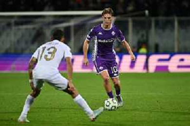 TVRG Fiorentina vs AEK Atene nella foto Nicolò Fagioli (Fiorentina) e Petros Mantalos (AEK Atene) Firenze 27-11-2025 Stadio Artemio Franchi Fiorentina vs AEK Atene UEFA Conference League fase a girone unico - 4a giornata foto Roberto Garavaglia/Agenzia Aldo Liverani sas