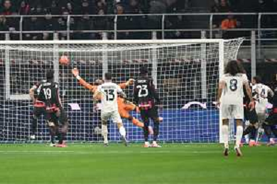 Milan vs Lazio nella foto Mario Gila Fuentes (Lazio) occasione da gol parata da Mike Maignan (Milan) Milano 29-11-2025 Stadio Giuseppe Meazza - San Siro Milan vs Lazio Campionato Serie A Enilive - 13a giornata foto Roberto Garavaglia/Agenzia Aldo Liverani sas