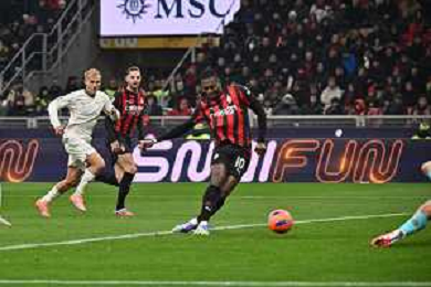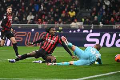 Milan vs Lazio nella foto Rafael Leao (Milan) segna il gol dell'1 a 0 Milano 29-11-2025 Stadio Giuseppe Meazza - San Siro Milan vs Lazio Campionato Serie A Enilive - 13a giornata foto Roberto Garavaglia/Agenzia Aldo Liverani sas