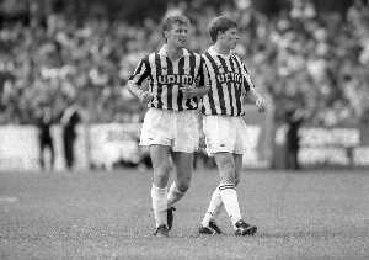 NEG-1991-1992 VILLAR PEROSA PARTITA AMICHEVOLE JUVENTUS A -VILLAR PEROSA NELLA FOTO MASSIMO CARRERA E STEFAN REUTER AG ALDO LIVERANI SAS