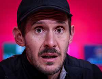 Chef-Trainer Julian Schuster (SC Freiburg) auf der Pressekonferenz nach dem Spiel, FC Bayern Muenchen vs. SC Freiburg, Fussball, Bundesliga, DFL, Saison 2025/2026, Hinrunde, 22.11.2025 DFB regulations prohibit any use of photographs as image sequences and/or quasi-video / action press AG KARMAPRESS-AG ALDO LIVERANI SAS