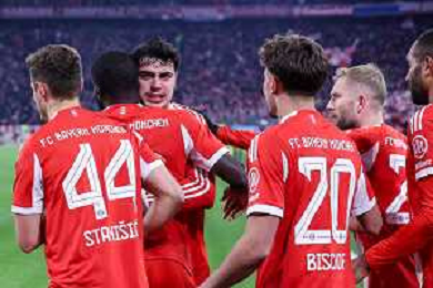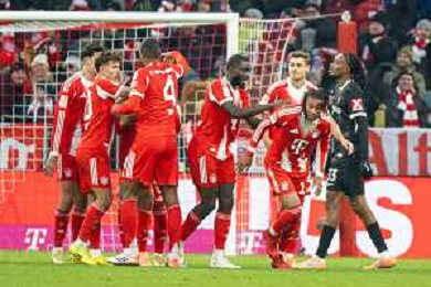 Torjubel der Mannschaft (FC Bayern Muenchen) nach dem 2:2 durch Michael Olise #17 (FC Bayern Muenchen), Jubel, FC Bayern Muenchen vs. SC Freiburg, Fussball, Bundesliga, DFL, Saison 2025/2026, Hinrunde, 22.11.2025 DFB regulations prohibit any use of photographs as image sequences and/or quasi-video / action press AG KARMAPRESS-AG ALDO LIVERANI SAS