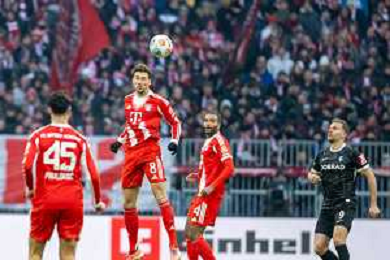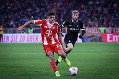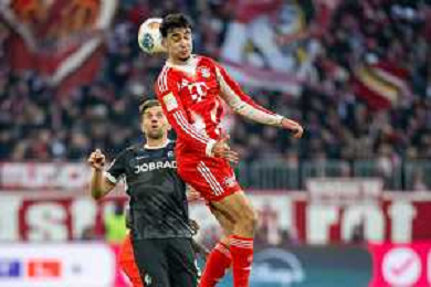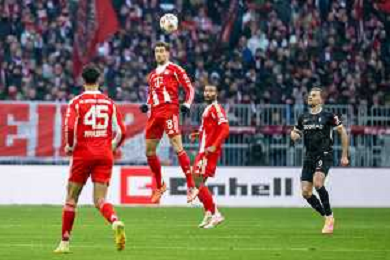 Aleksandar Pavlovic #45 (FC Bayern Muenchen), Kopfball, FC Bayern Muenchen - SC Freiburg, Fussball, Bundesliga, 11. Spieltag, 22.11.2025 DFB regulations prohibit any use of photographs as image sequences and/or quasi-video / action press AG KARMAPRESS-AG ALDO LIVERANI SAS