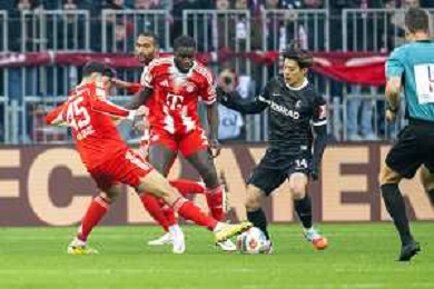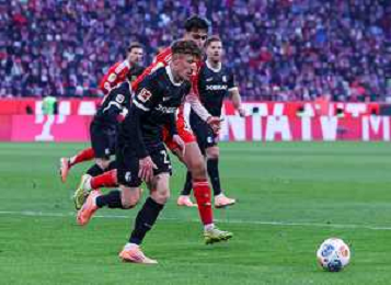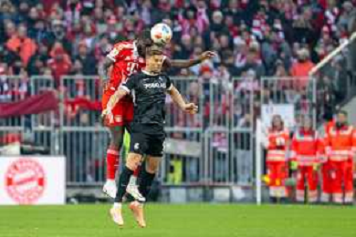 Torjbel SC Freiburg, FC Bayern Muenchen - SC Freiburg, Fussball, Bundesliga, 11. Spieltag, 22.11.2025 DFB regulations prohibit any use of photographs as image sequences and/or quasi-video / action press AG KARMAPRESS-AG ALDO LIVERANI SAS
