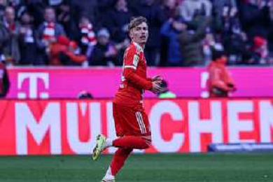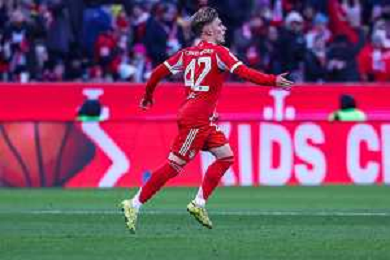 Lennart Karl #42 (FC Bayern Muenchen) jubelt nach seinem Treffer zum 1:2, FC Bayern Muenchen vs. SC Freiburg, Fussball, Bundesliga, DFL, Saison 2025/2026, Hinrunde, 22.11.2025 DFB regulations prohibit any use of photographs as image sequences and/or quasi-video / action press AG KARMAPRESS-AG ALDO LIVERANI SAS