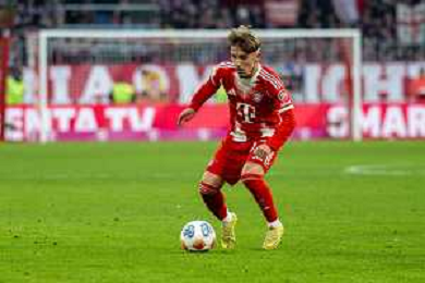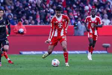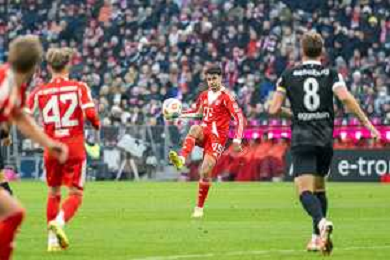 Lennart Karl #42 (FC Bayern Muenchen) mit dem Schuss, der zum 1:2 fuehrt, FC Bayern Muenchen vs. SC Freiburg, Fussball, Bundesliga, DFL, Saison 2025/2026, Hinrunde, 22.11.2025 DFB regulations prohibit any use of photographs as image sequences and/or quasi-video / action press AG KARMAPRESS-AG ALDO LIVERANI SAS