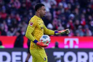 Noah Atubolu #1 (SC Freiburg) in Aktion, FC Bayern Muenchen vs. SC Freiburg, Fussball, Bundesliga, DFL, Saison 2025/2026, Hinrunde, 22.11.2025 DFB regulations prohibit any use of photographs as image sequences and/or quasi-video / action press AG KARMAPRESS-AG ALDO LIVERANI SAS
