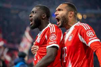 Dayot Upamecano #2 (FC Bayern Muenchen) Torjubel zum 3:2, Jonathan Tah #4 (FC Bayern Muenchen), FC Bayern Muenchen - SC Freiburg, Fussball, Bundesliga, 11. Spieltag, 22.11.2025 DFB regulations prohibit any use of photographs as image sequences and/or quasi-video / action press AG KARMAPRESS-AG ALDO LIVERANI SAS