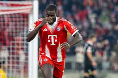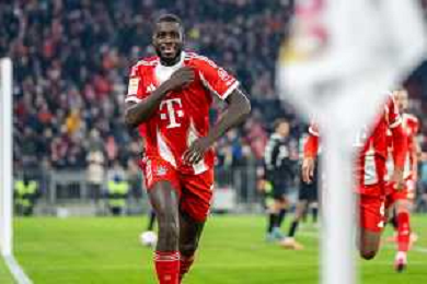 Dayot Upamecano #2 (FC Bayern Muenchen) jubelt nach seinem Tor zum 3:2, FC Bayern Muenchen vs. SC Freiburg, Fussball, Bundesliga, DFL, Saison 2025/2026, Hinrunde, 22.11.2025 DFB regulations prohibit any use of photographs as image sequences and/or quasi-video / action press AG KARMAPRESS-AG ALDO LIVERANI SAS