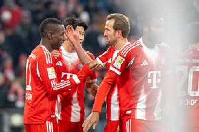 Spezieller Torjuel von Nicolas Jackson #11 (FC Bayern Muenchen) nach dem Tor zum 5:2, FC Bayern Muenchen vs. SC Freiburg, Fussball, Bundesliga, DFL, Saison 2025/2026, Hinrunde, 22.11.2025 DFB regulations prohibit any use of photographs as image sequences and/or quasi-video / action press AG KARMAPRESS-AG ALDO LIVERANI SAS
