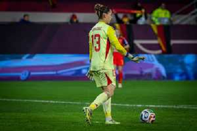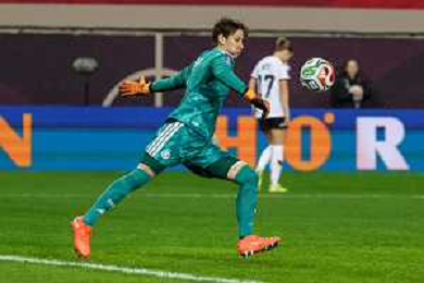 Ann-Katrin Berger #1 (Deutschland) in aktion, Abschlag, Deutschland vs. Spanien, Fussball, Frauen, UEFA, Women’s Nations League, Saison 2025/2026, Finale - Runde 1 von 2, 28.11.2025 / action press AG KARMAPRESS-AG ALDO LIVERANI SAS