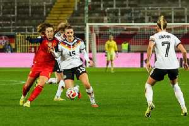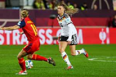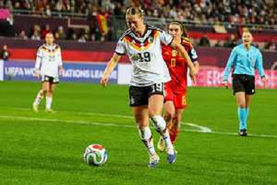 Klara Buehl #19 (Deutschland) in Aktion, Deutschland vs. Spanien, Fussball, Frauen, UEFA, Women’s Nations League, Saison 2025/2026, Finale - Runde 1 von 2, 28.11.2025 / action press AG KARMAPRESS-AG ALDO LIVERANI SAS