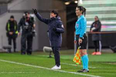 Cheftrainer Christian Wueck(Deutschland) gestikuliert energisch, Deutschland vs. Spanien, Fussball, Frauen, UEFA, Women’s Nations League, Saison 2025/2026, Finale - Runde 1 von 2, 28.11.2025 / action press AG KARMAPRESS-AG ALDO LIVERANI SAS