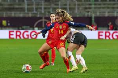 Laia Aleixandri #14 (Spanien / Seleccion Espanola Femenina de Futbol) schaut einem Ball hinterher, Deutschland vs. Spanien, Fussball, Frauen, UEFA, Women’s Nations League, Saison 2025/2026, Finale - Runde 1 von 2, 28.11.2025 / action press AG KARMAPRESS-AG ALDO LIVERANI SAS