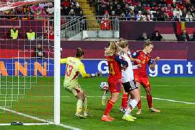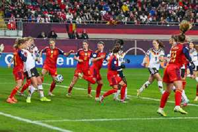 Ein Eckball der deutschen Mannschaft geht knapp am Tor der Spanierinnen vorbei, Deutschland vs. Spanien, Fussball, Frauen, UEFA, Women’s Nations League, Saison 2025/2026, Finale - Runde 1 von 2, 28.11.2025 / action press AG KARMAPRESS-AG ALDO LIVERANI SAS