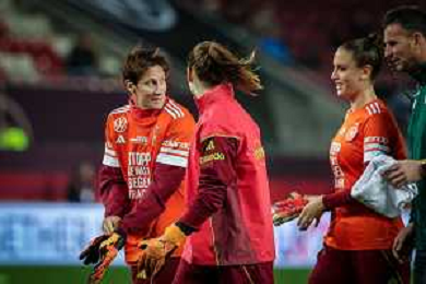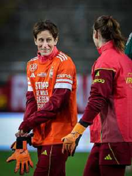 Ann-Katrin Berger #1 (Deutschland) mit Stina Johannes #12 (Deutschland), warm-up, Deutschland vs. Spanien, Fussball, Frauen, UEFA, Women’s Nations League, Saison 2025/2026, Finale - Runde 1 von 2, 28.11.2025 / action press AG KARMAPRESS-AG ALDO LIVERANI SAS