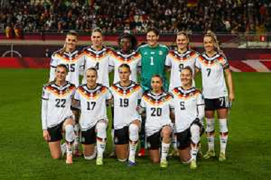 Mannschaftsfoto der deutschen Mannschaft, Deutschland vs. Spanien, Fussball, Frauen, UEFA, Women’s Nations League, Saison 2025/2026, Finale - Runde 1 von 2, 28.11.2025 / action press AG KARMAPRESS-AG ALDO LIVERANI SAS