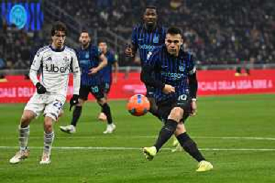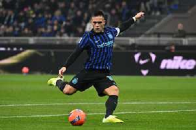 Inter vs Como nella foto Lautaro Martinez (Inter) al tiro Milano 06-12-2025 Stadio Giuseppe Meazza - San Siro Inter vs Como Campionato Serie A Enilive - 14a giornata foto Roberto Garavaglia/Agenzia Aldo Liverani sas
