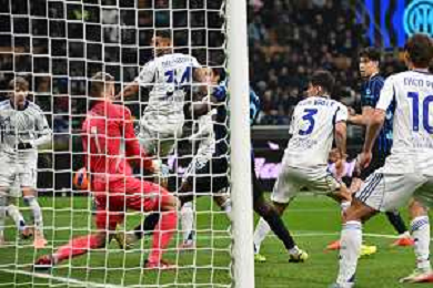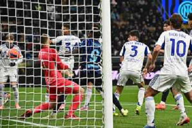 Inter vs Como nella foto Federico Dimarco (Inter) segna il gol del 3 a 0 ma la rete viene annullata per fuorigioco Milano 06-12-2025 Stadio Giuseppe Meazza - San Siro Inter vs Como Campionato Serie A Enilive - 14a giornata foto Roberto Garavaglia/Agenzia Aldo Liverani sas