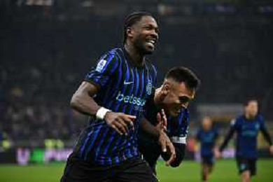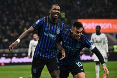 Inter vs Como nella foto Marcus Thuram (Inter) e Francesco Pio Esposito (Inter) esultanza dopo il gol del 2 a 0 Milano 06-12-2025 Stadio Giuseppe Meazza - San Siro Inter vs Como Campionato Serie A Enilive - 14a giornata foto Roberto Garavaglia/Agenzia Aldo Liverani sas